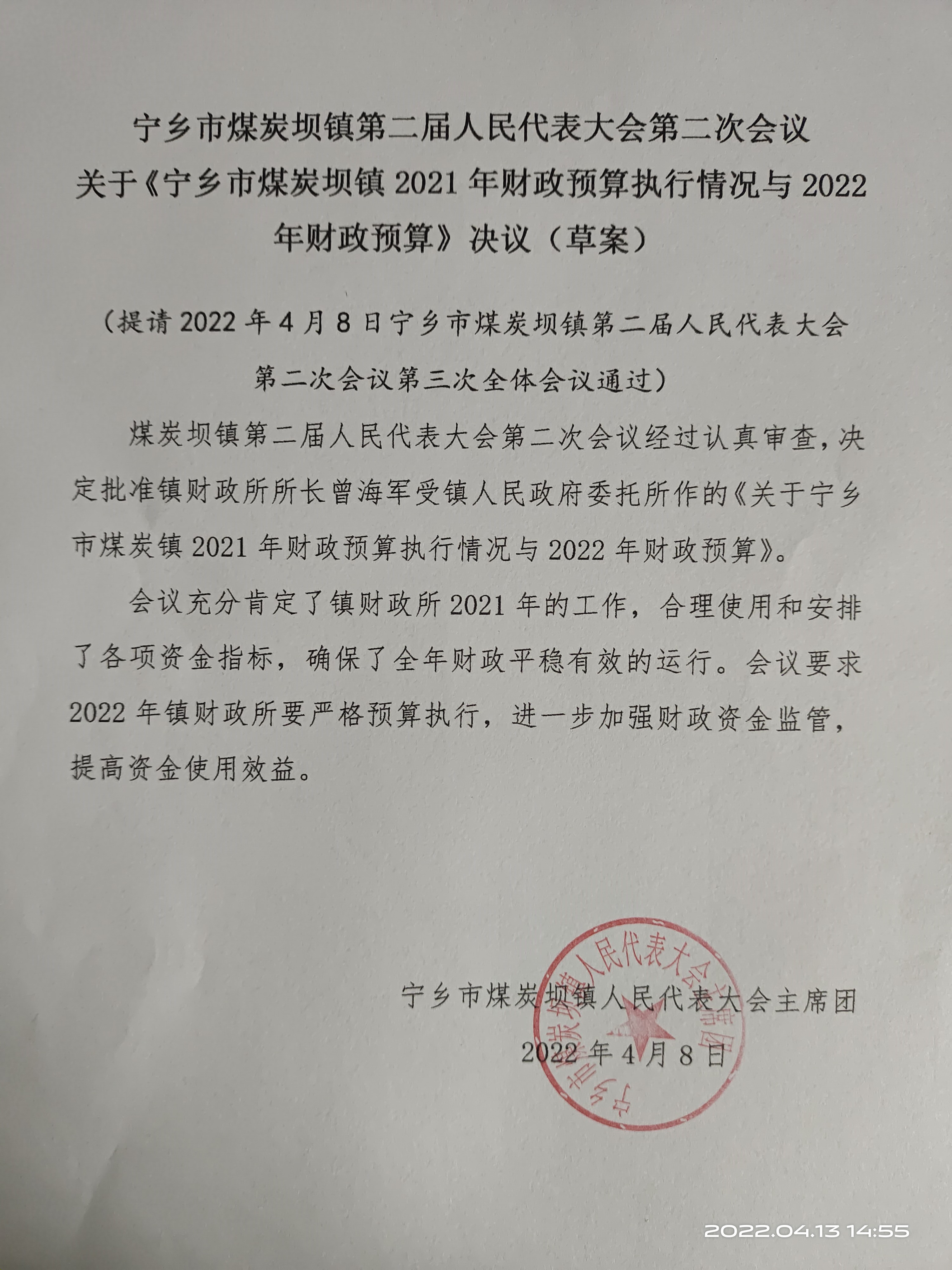 寧鄉市煤炭壩鎮人民政府2022年度部門預算公開