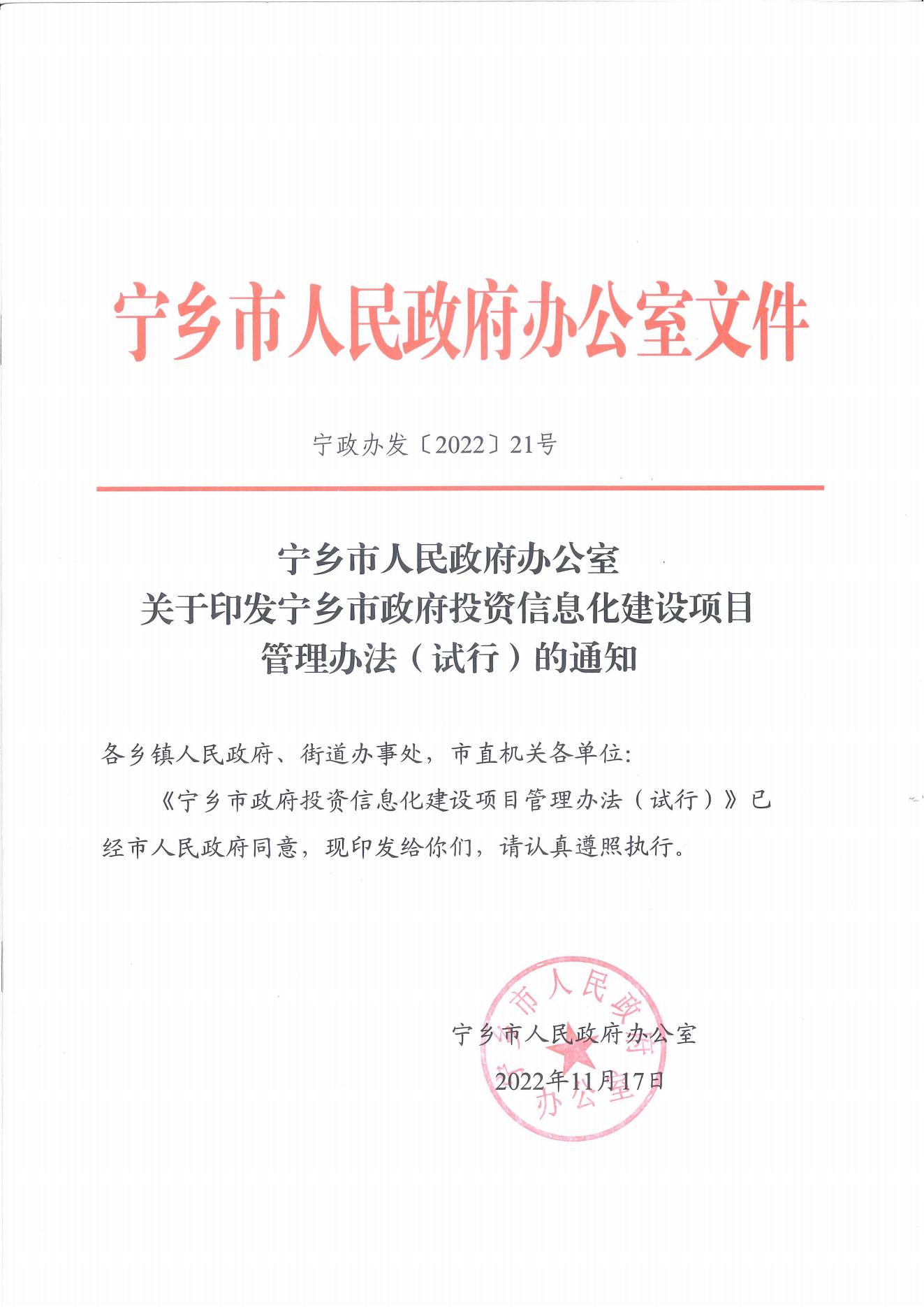 《寧鄉市政府投資信息化建設項目管理辦法(試行)》(寧政辦發(2022)21號).pdf.pdf
