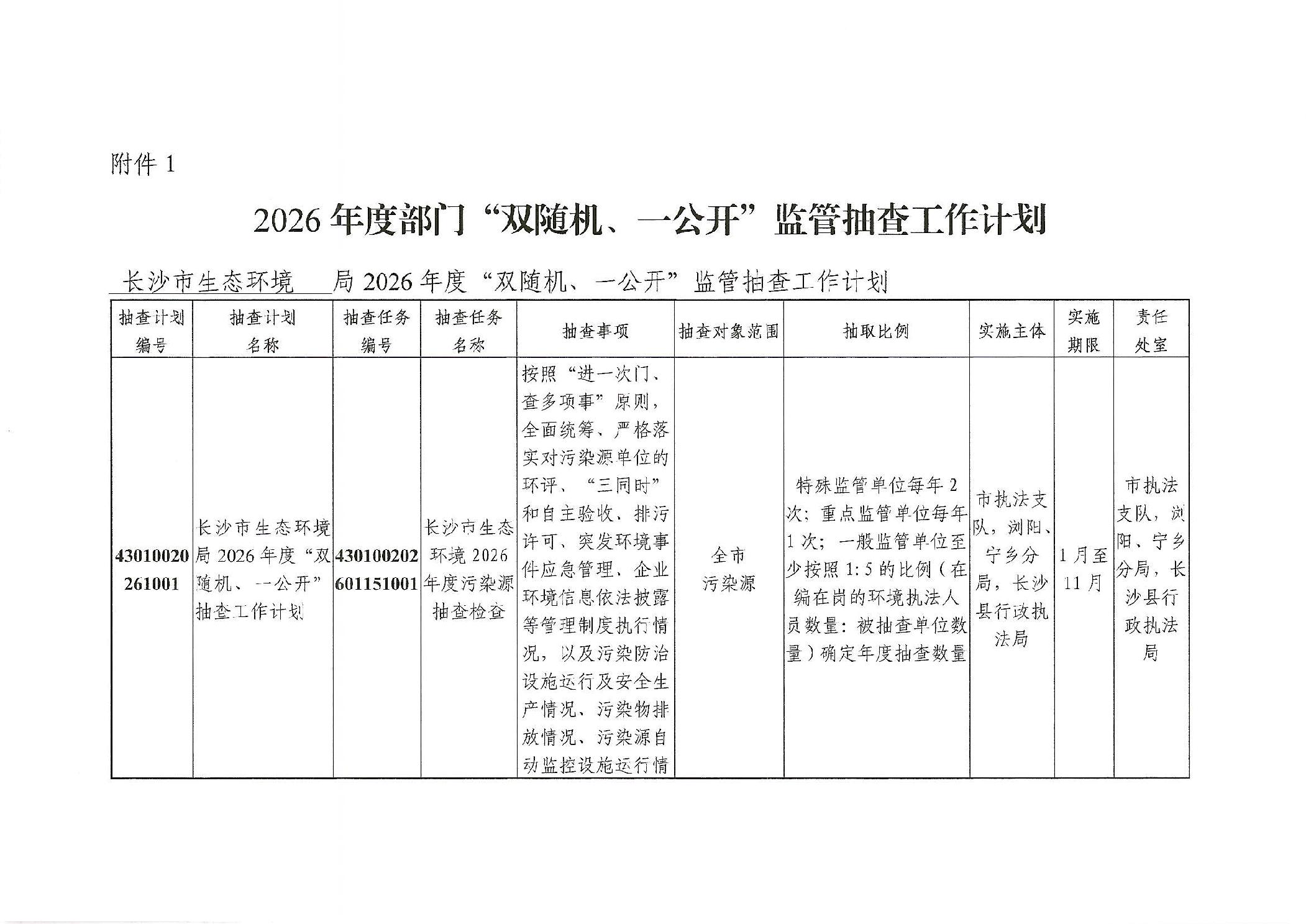 2026年度“雙隨機、一公開”監管抽查工作計劃、2026年一季度涉企行政檢查計劃