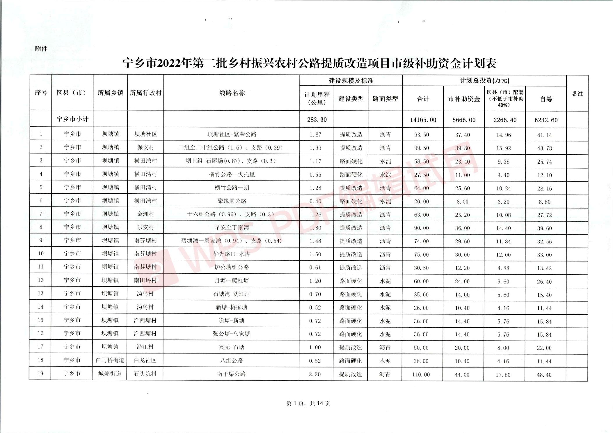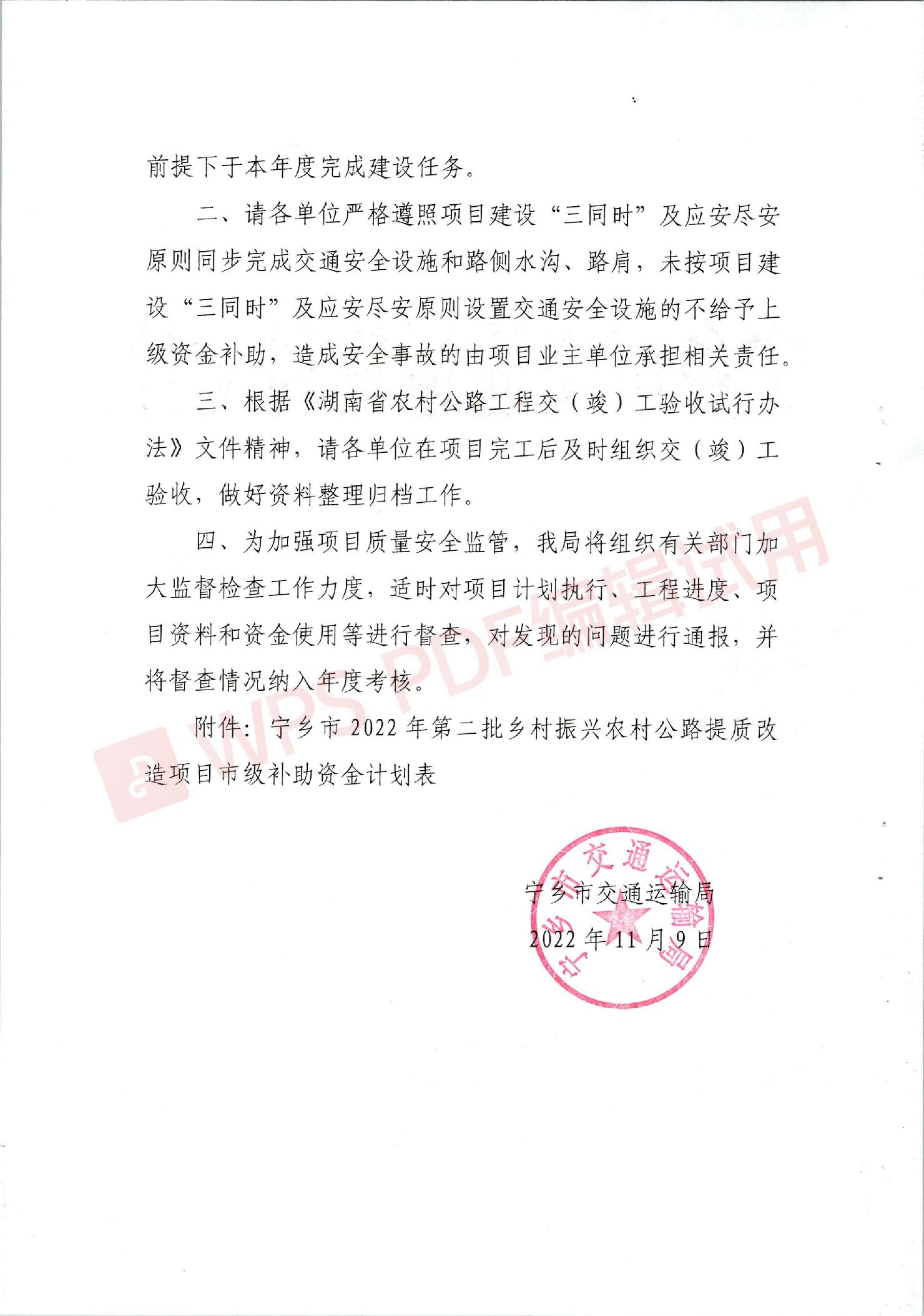 關(guān)于下達(dá)《寧鄉(xiāng)市2022年第二批鄉(xiāng)村振興農(nóng)村公路提質(zhì)改造項目市級補(bǔ)助資金計劃》的通知