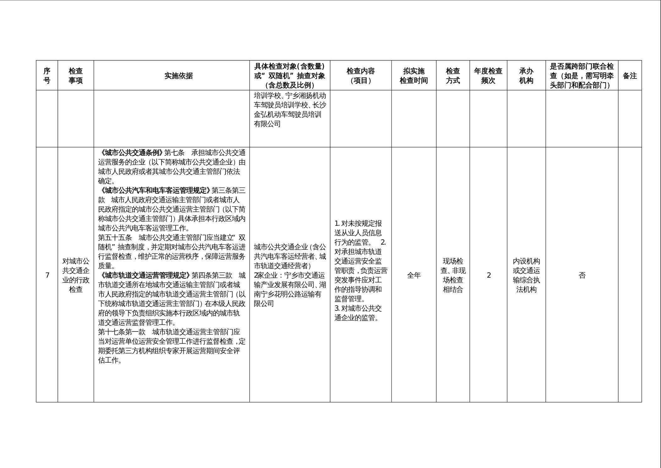 寧鄉市交通運輸局2026年度涉企行政檢查計劃