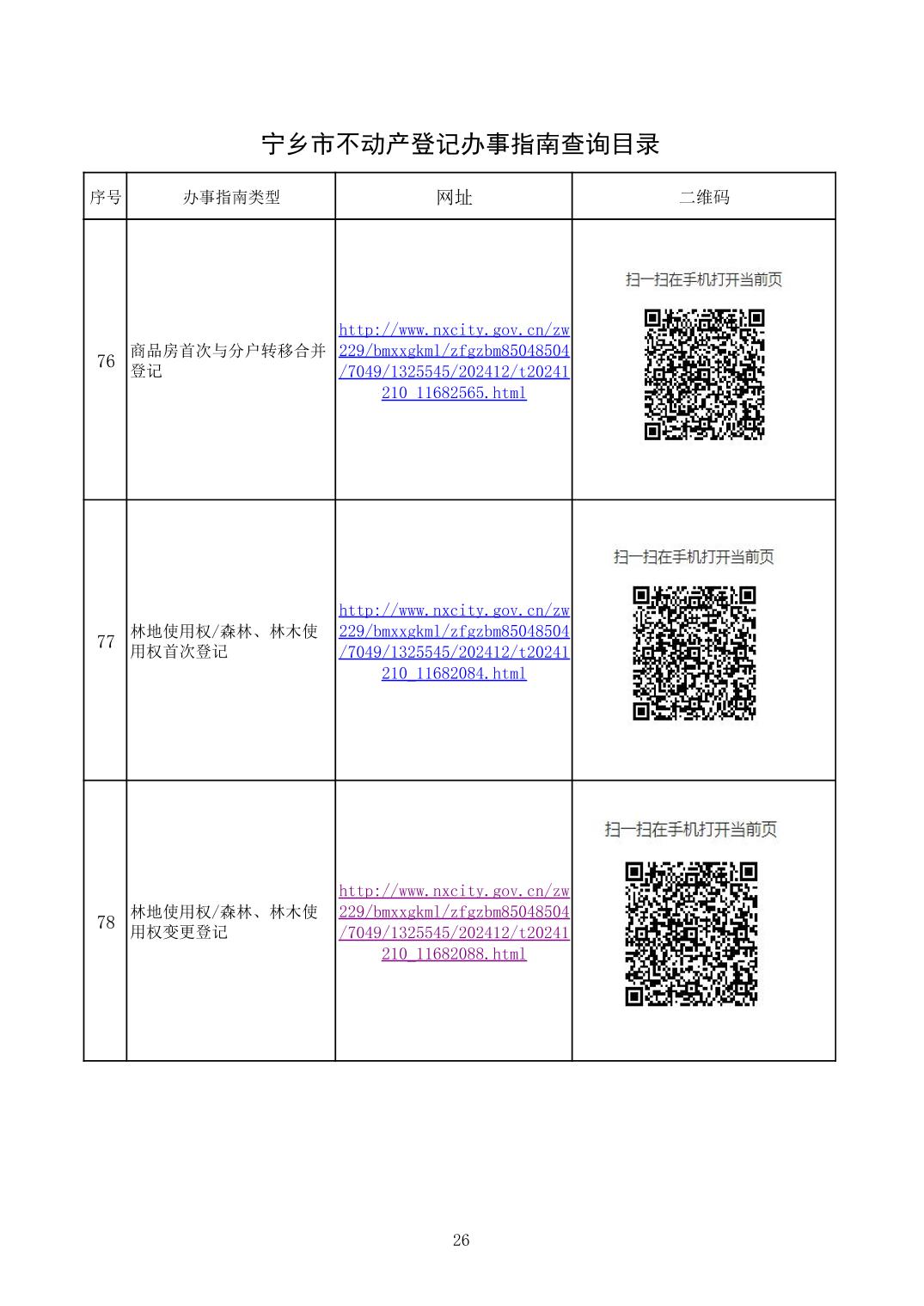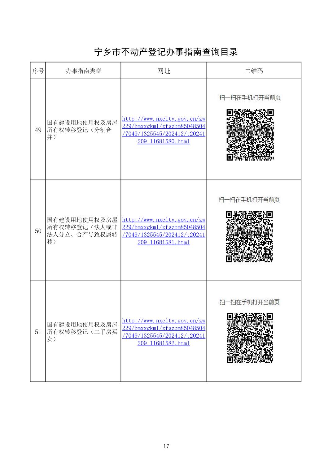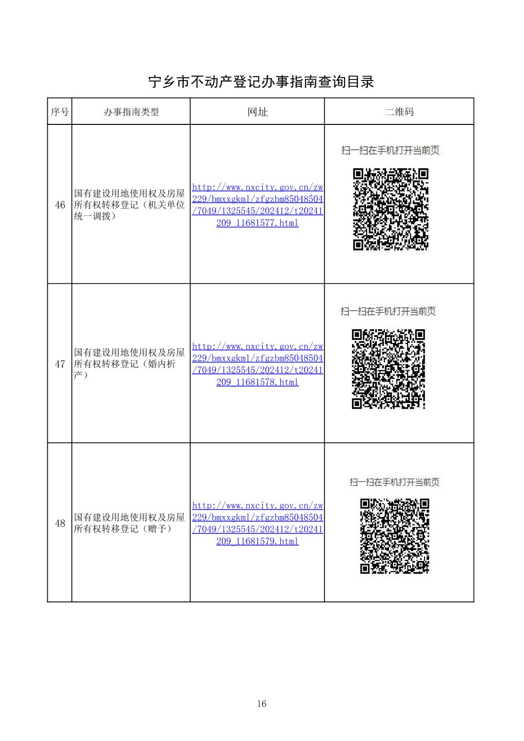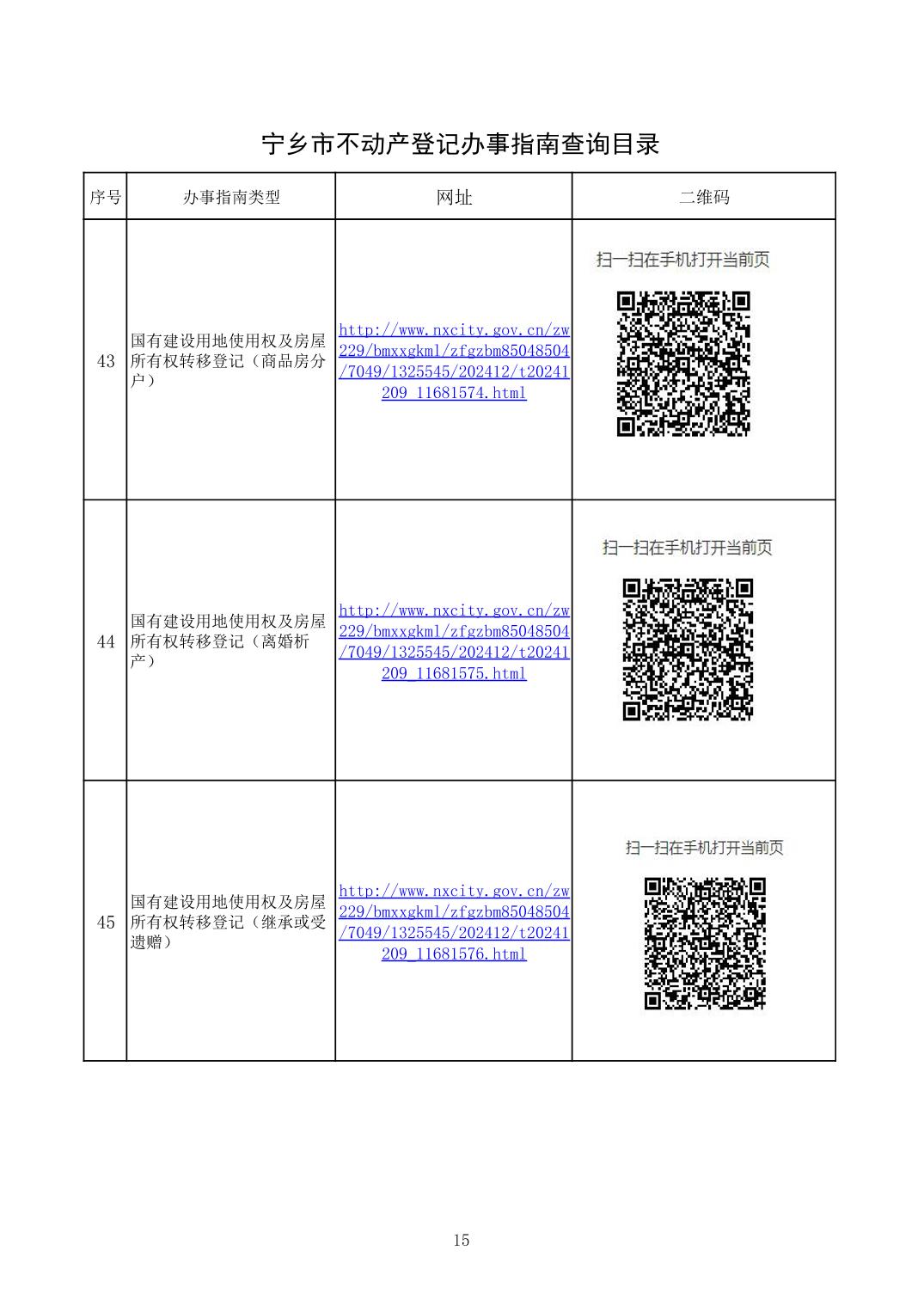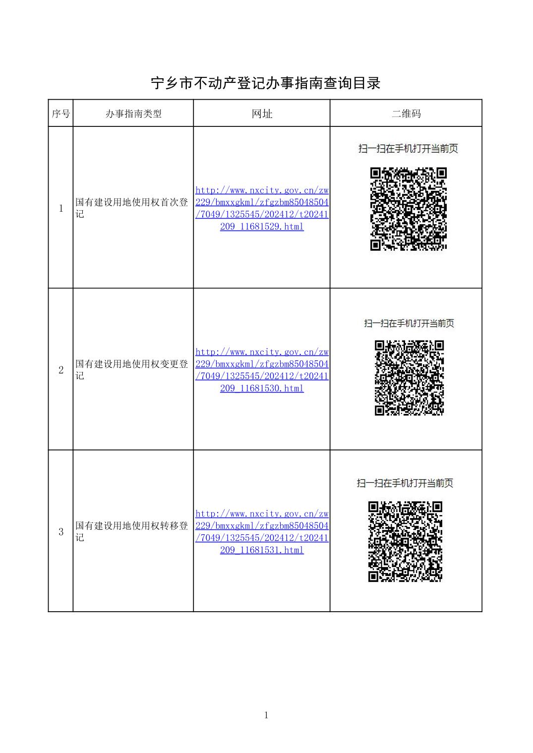 寧鄉市不動產登記辦事指南查詢目錄(匯總,含相關鏈接、二維碼)