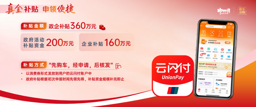 7.補貼使用。本次活動發放的政府購車補貼以消費券形式發放,使用截止時間為2026年12月31日,逾期未使用自動失效,不予補發。消費券使用范圍為線下可受理云閃付支付的商戶。