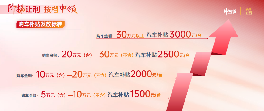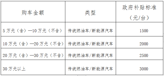活動期間(以購車發票時間為準),對在活動指定車企購買家用乘用車(非營運性質)的個人消費者,以發放消費券形式給予補貼。購車補貼采用“先購車,經申請,后核發”的方式,根據初次申報時間先領先得,補貼資金規模補完即止。
