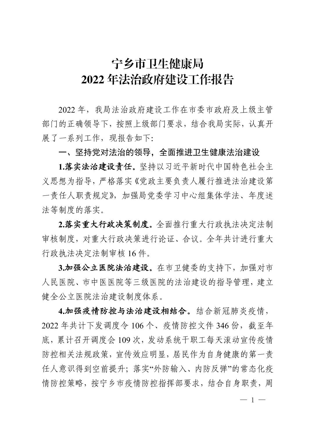 寧鄉市衛生健康局2022年法治政府建設工作報告