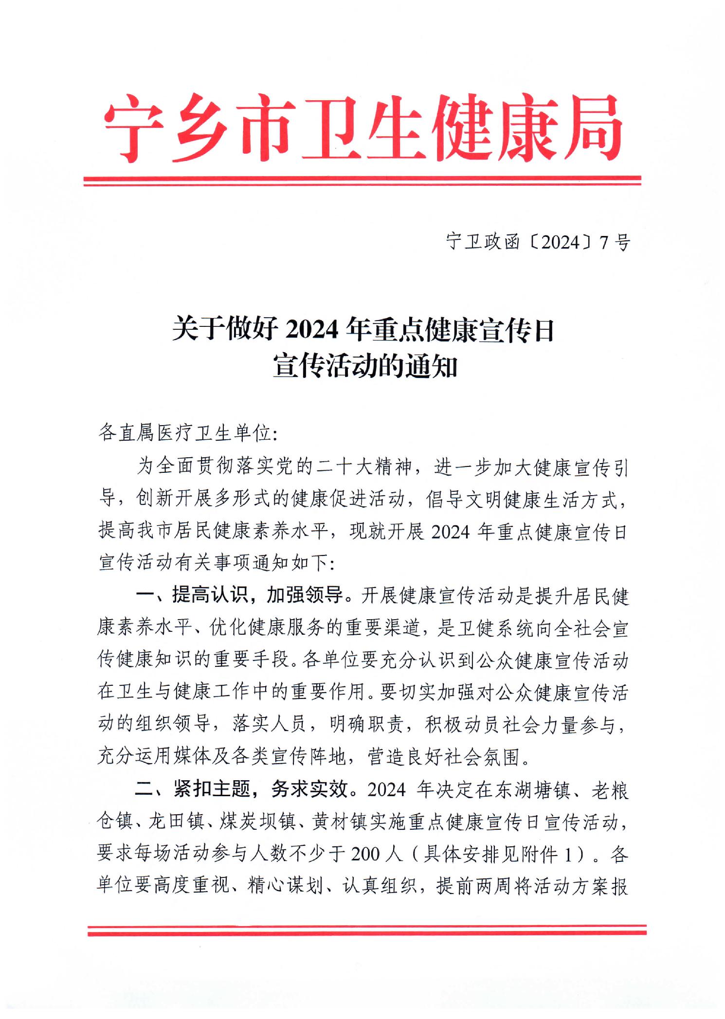 關于做好寧鄉市2024年重點健康宣傳日公眾健康宣傳活動的通知