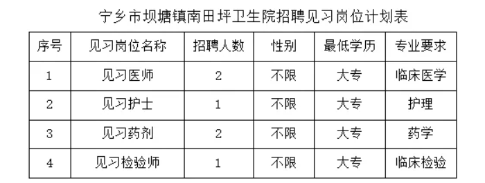 寧鄉市壩塘鎮南田坪衛生院公開招聘就業見習人員公告