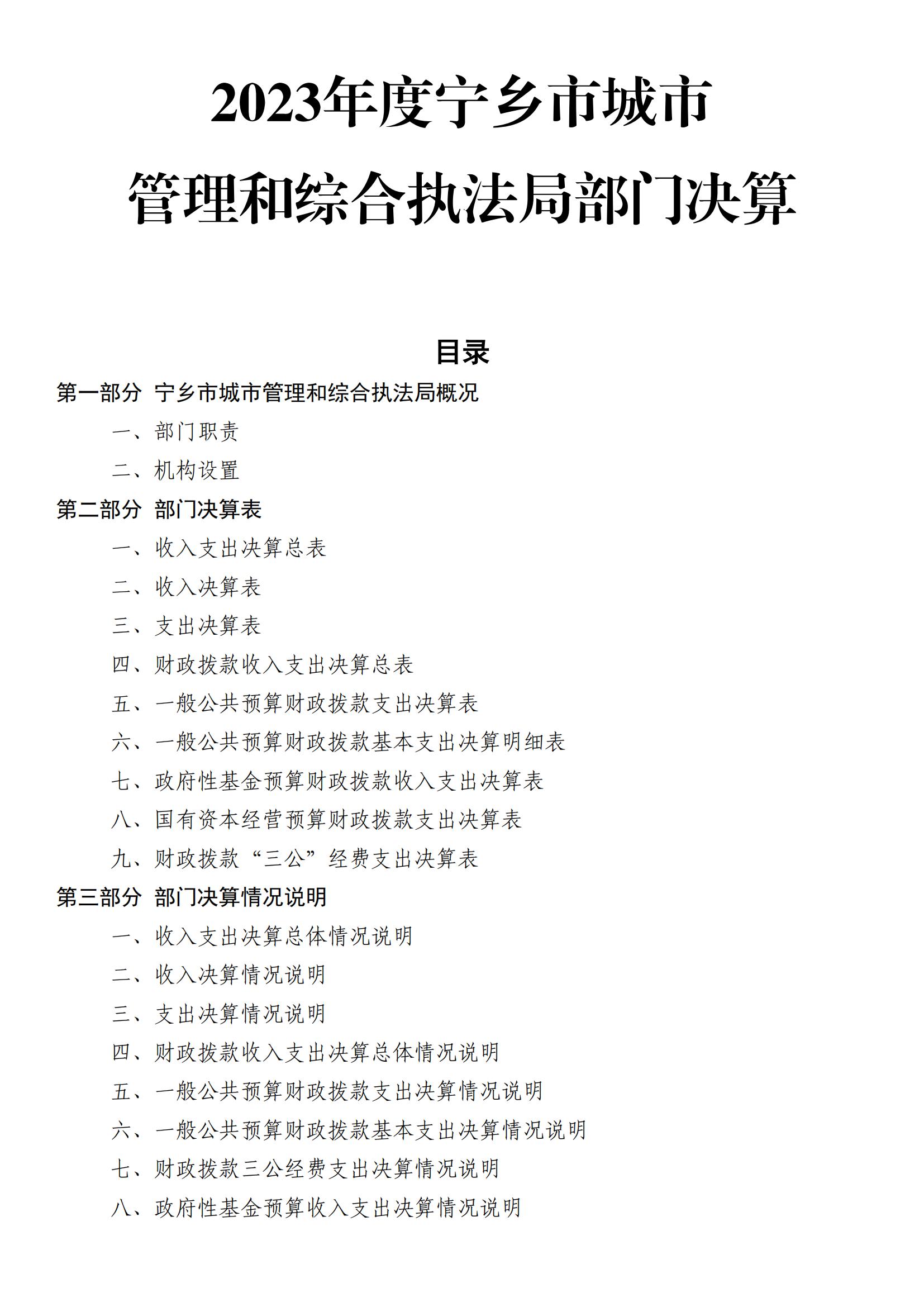 2023年度寧鄉市城市管理和綜合執法局部門決算(本級)
