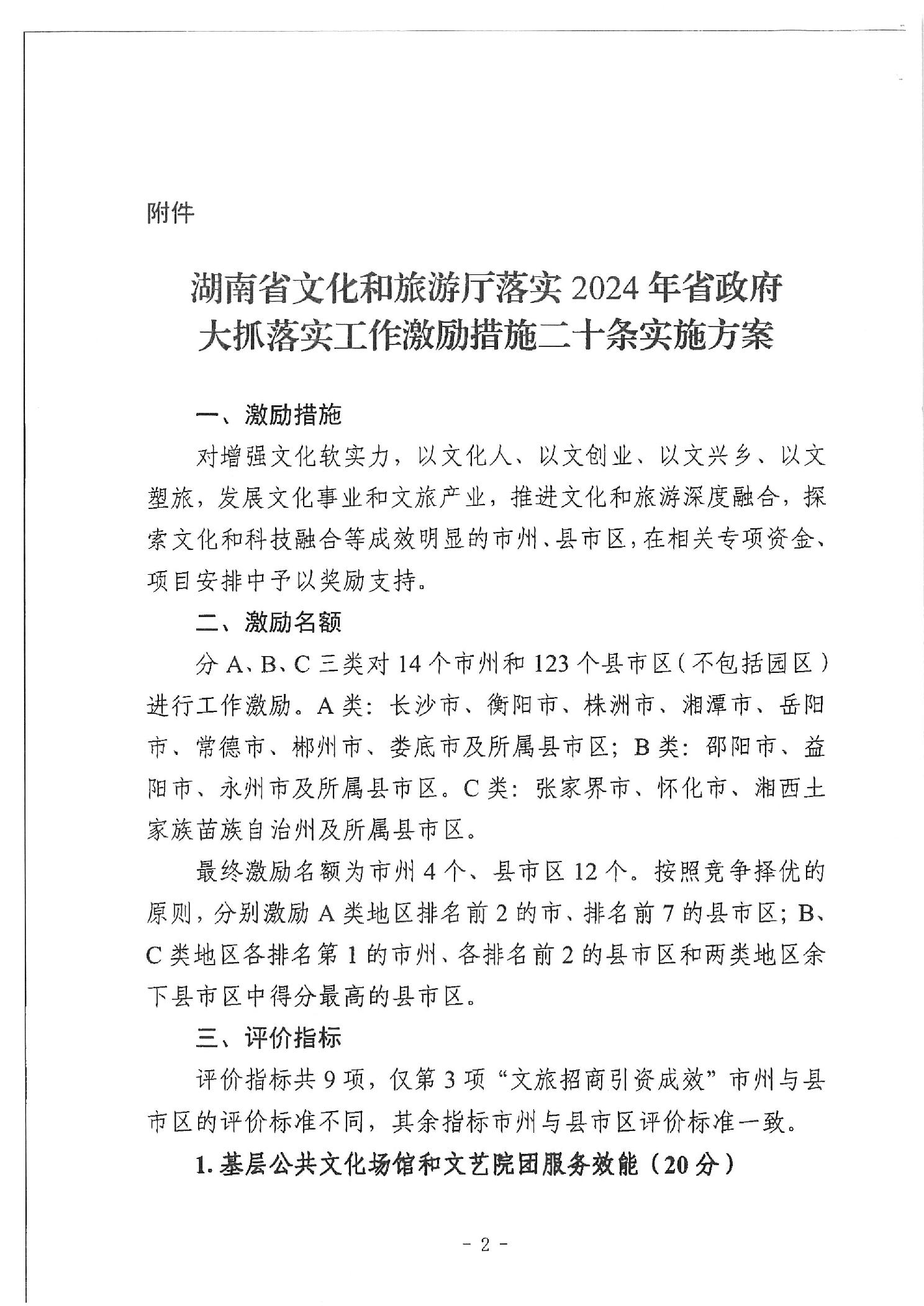關于印發《湖南省文化和旅游廳落實2024年省政府大抓落實工作激勵措施二十條實施方案》的通知