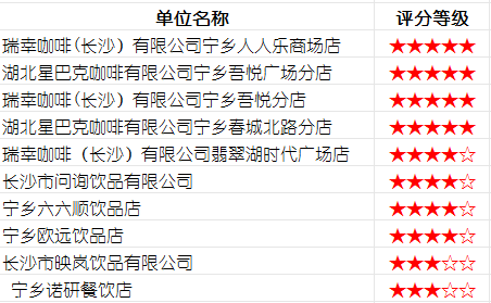 為切實強化食品安全監督管理,提升寧鄉市食品安全治理水平,防范食品安全風險隱患,推動全市餐飲服務單位誠信經營、加強自律、接受他律,打造行政監督、社會監督和群眾監督的共治平臺,寧鄉市市場監督管理局餐飲服務單位食品安全“評分榜”第全市10家自制飲品餐飲店(奶茶、咖啡、果汁等)公示如下: