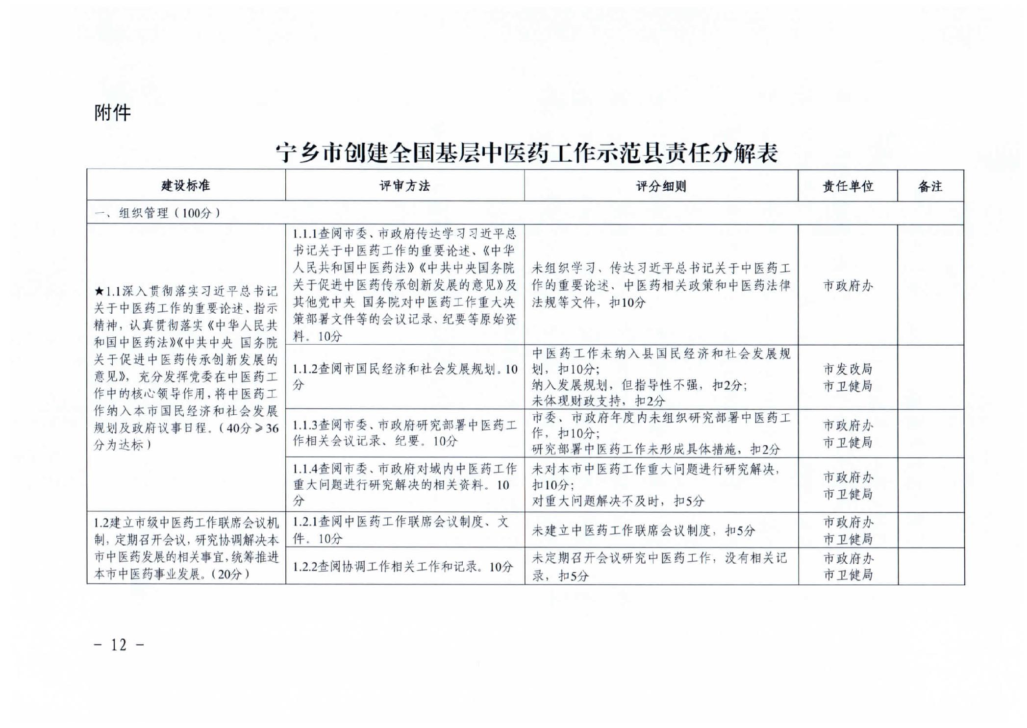 寧鄉(xiāng)市人民政府辦公室關(guān)于印發(fā)寧鄉(xiāng)市創(chuàng)建全國(guó)基層中醫(yī)藥工作示范縣實(shí)施方案的通知