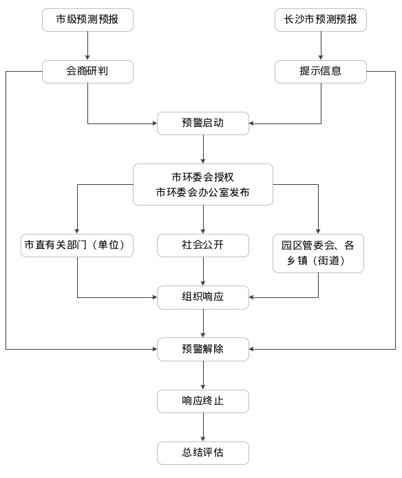 區域聯動,積極響應。加強與長沙市、周邊地區的應急聯動。積極響應長沙市重污染天氣應急預案,按照上級預案要求啟動本級應急預案。與周邊地區的應急聯動,報長沙市人民政府有關應急指揮機構協調開展。