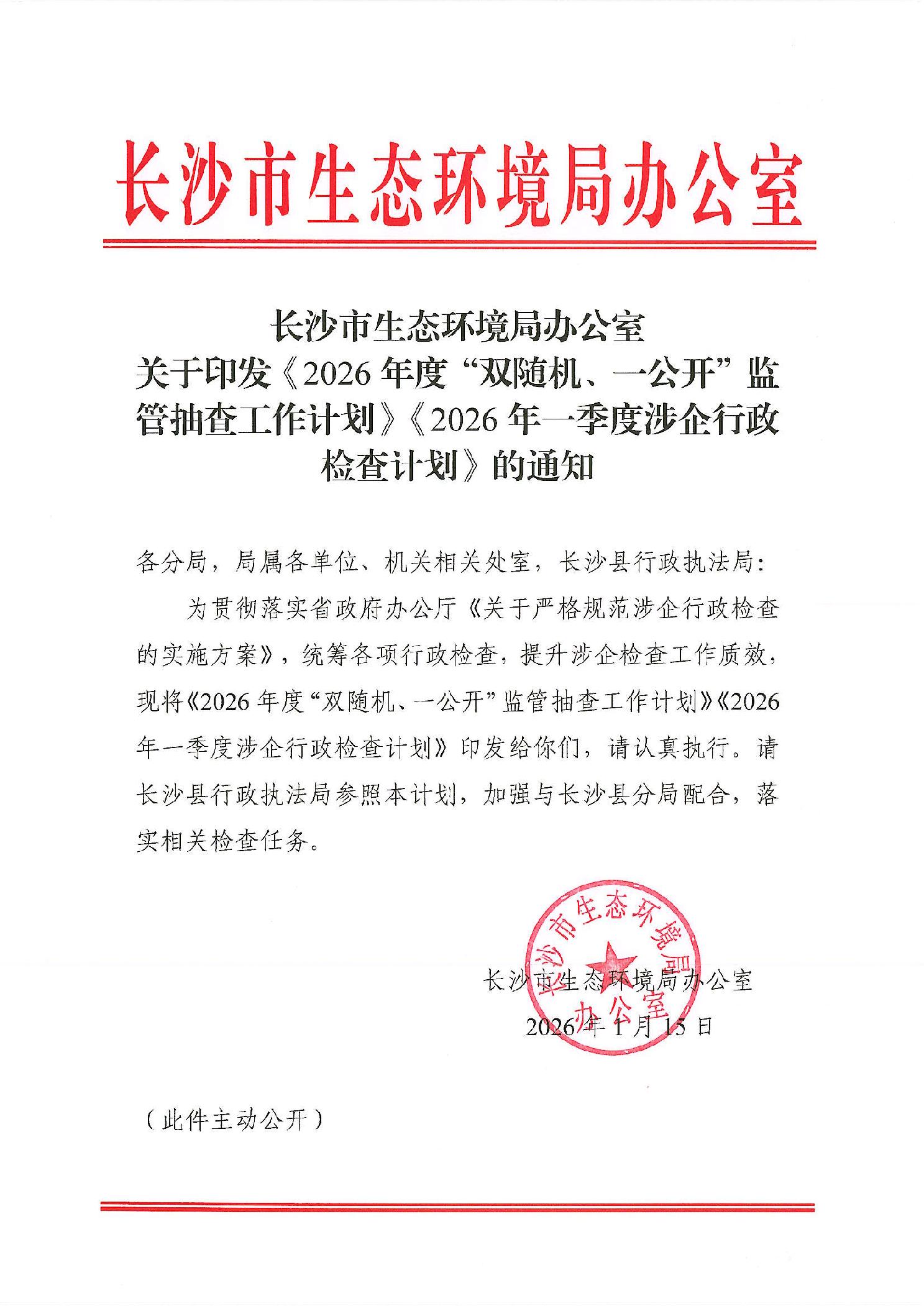 關于印發《2026年度“雙隨機、一公開”監管抽查工作計劃》《2026年一季度涉企行政檢查計劃》的通知.pdf