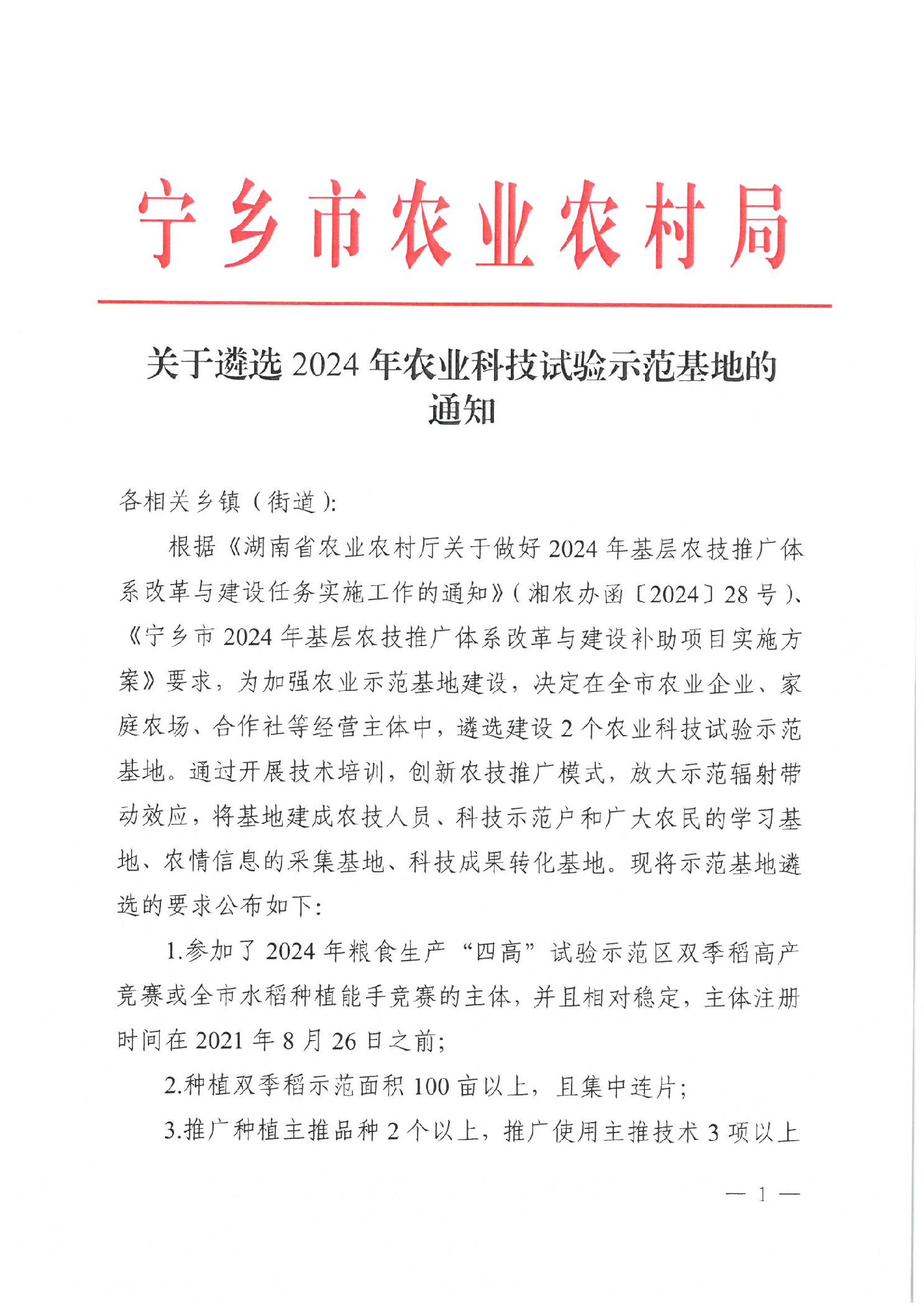 關于遴選2024年農業科技試驗示范基地的通知