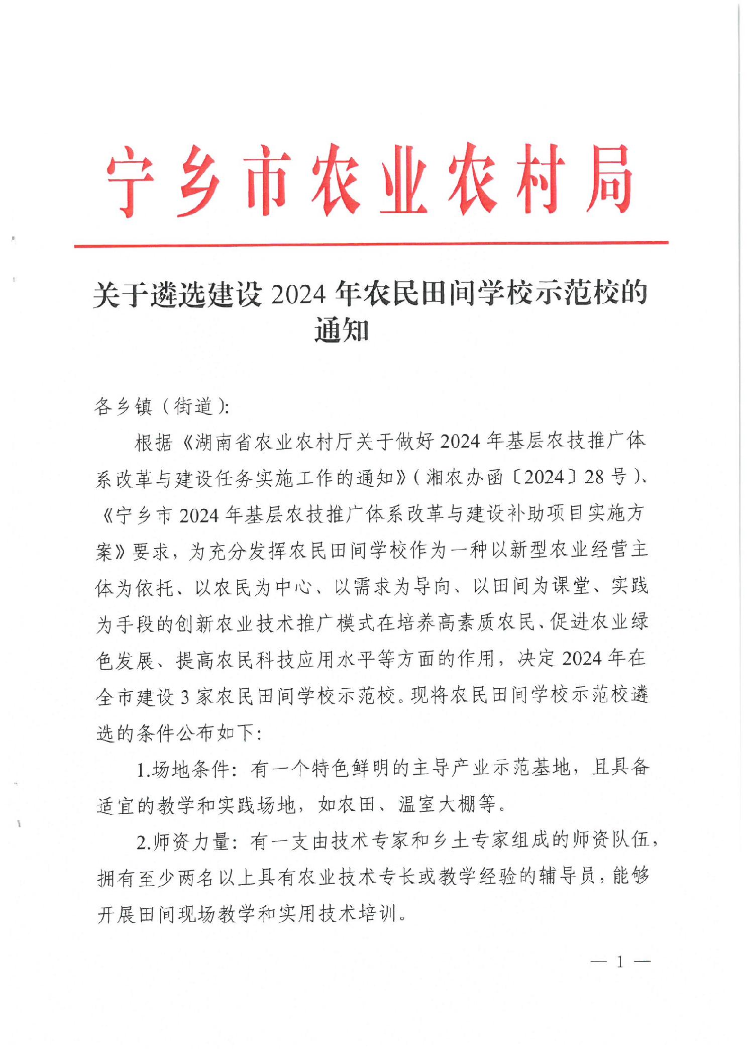關(guān)于遴選建設2024年農(nóng)民田間學校示范校的通知