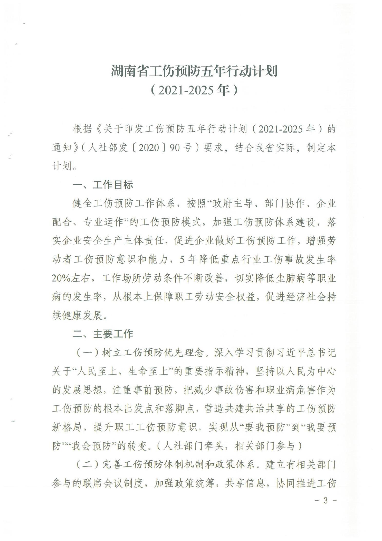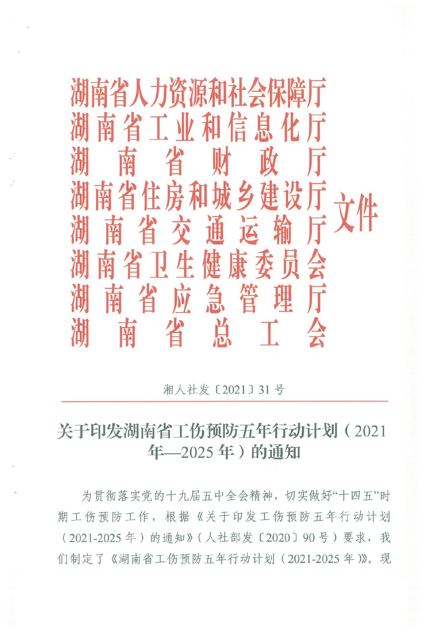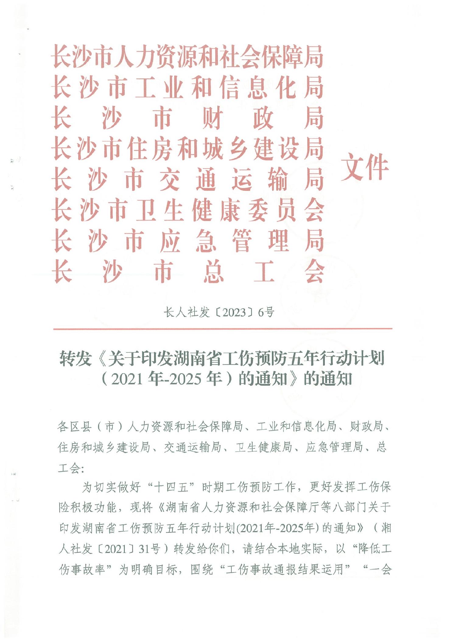 轉發《關于印發湖南省工傷預防五年行動計劃(2021年-2025年)的通知》的通知