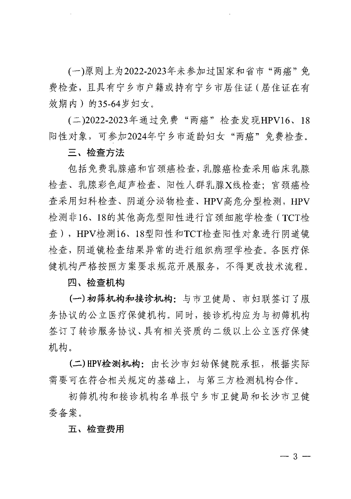 2024年寧鄉市適齡婦女“兩癌”免費檢查實施方案