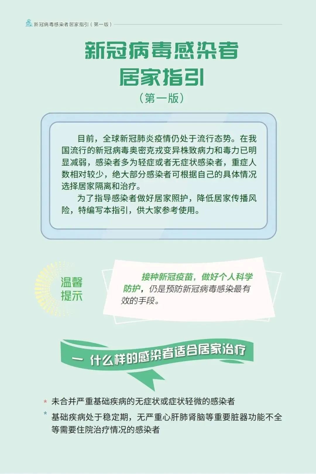 為了指導(dǎo)感染者做好居家照護(hù),降低居家傳播風(fēng)險(xiǎn),國(guó)家衛(wèi)健委編寫(xiě)新冠病毒感染者居家指引(第一版),供大家參考使用。