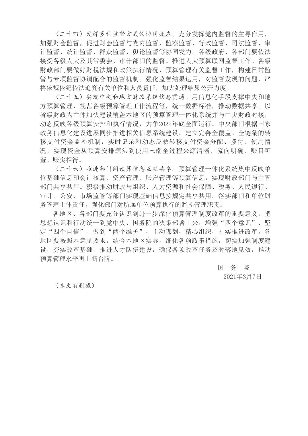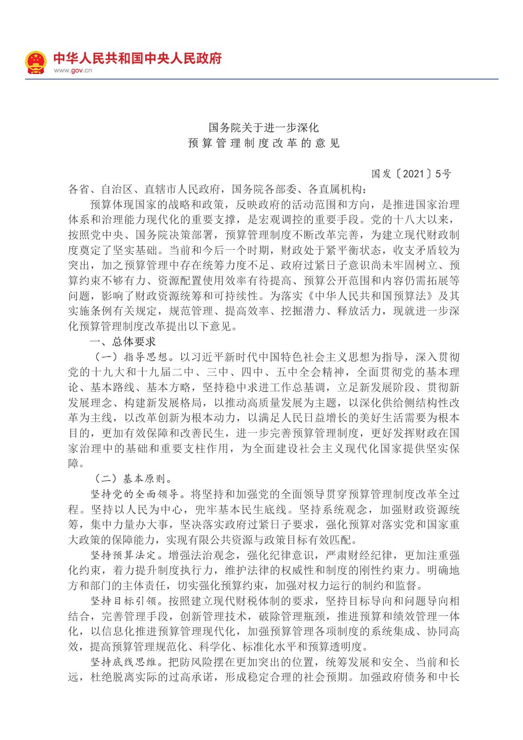國(guó)務(wù)院關(guān)于進(jìn)一步深化預(yù)算管理制度改革的意見(jiàn)