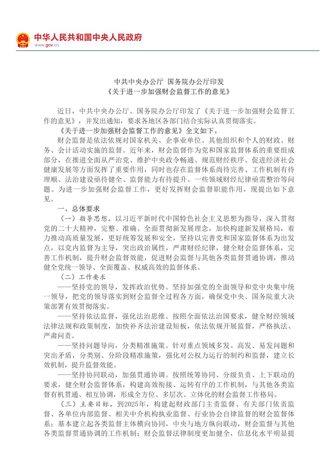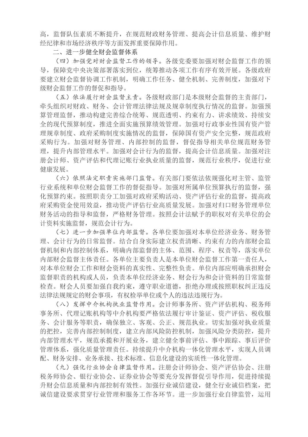 中共中央辦公廳 國務院辦公廳印發《關于進一步加強財會監督工作的意見》