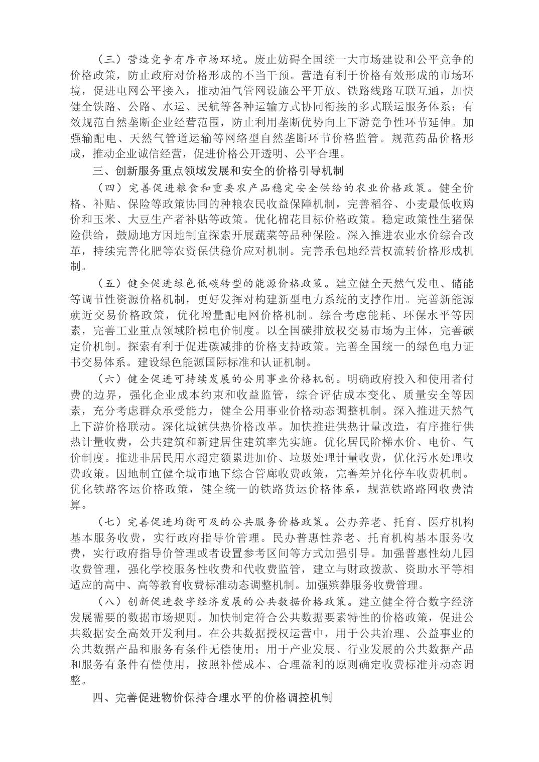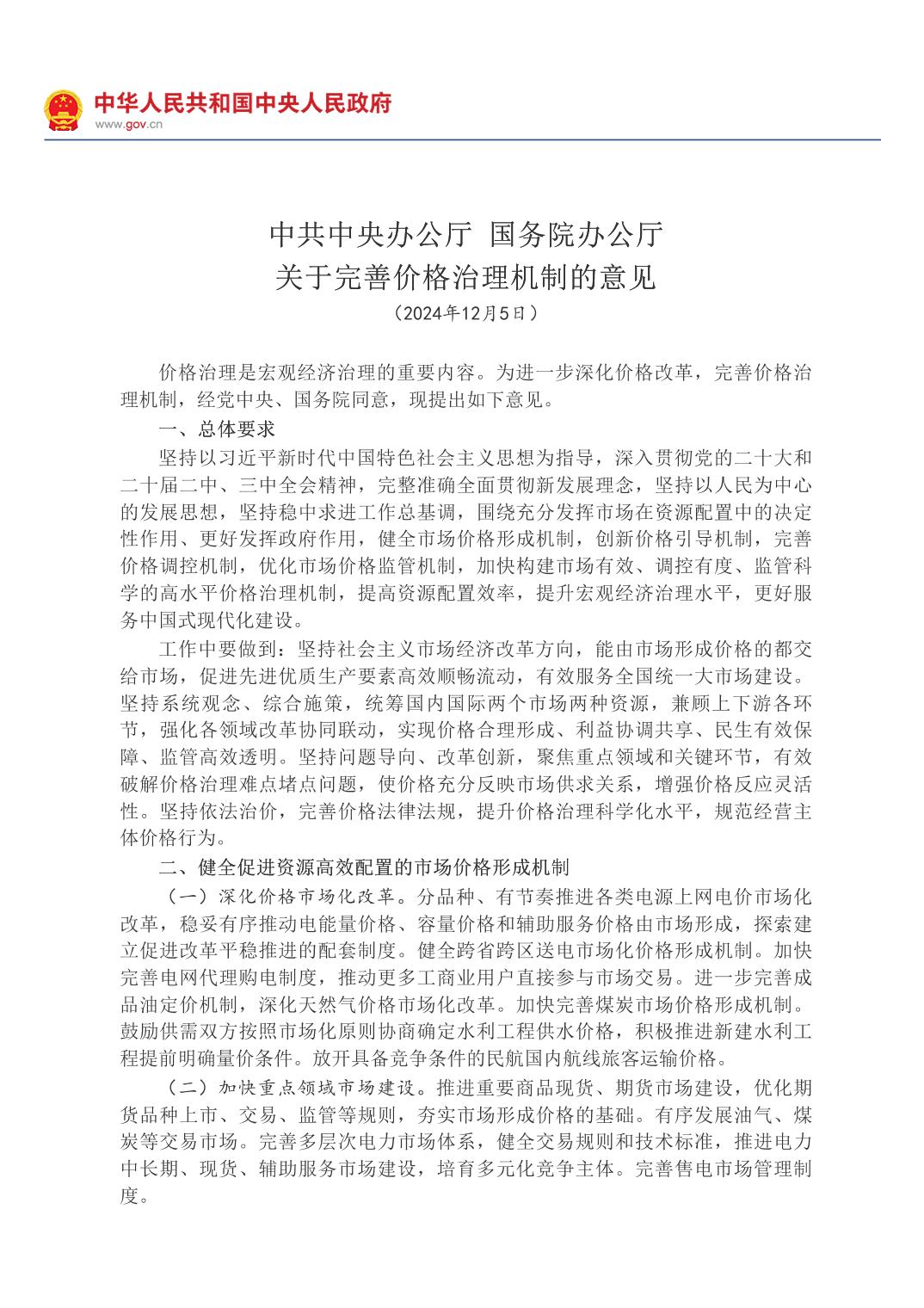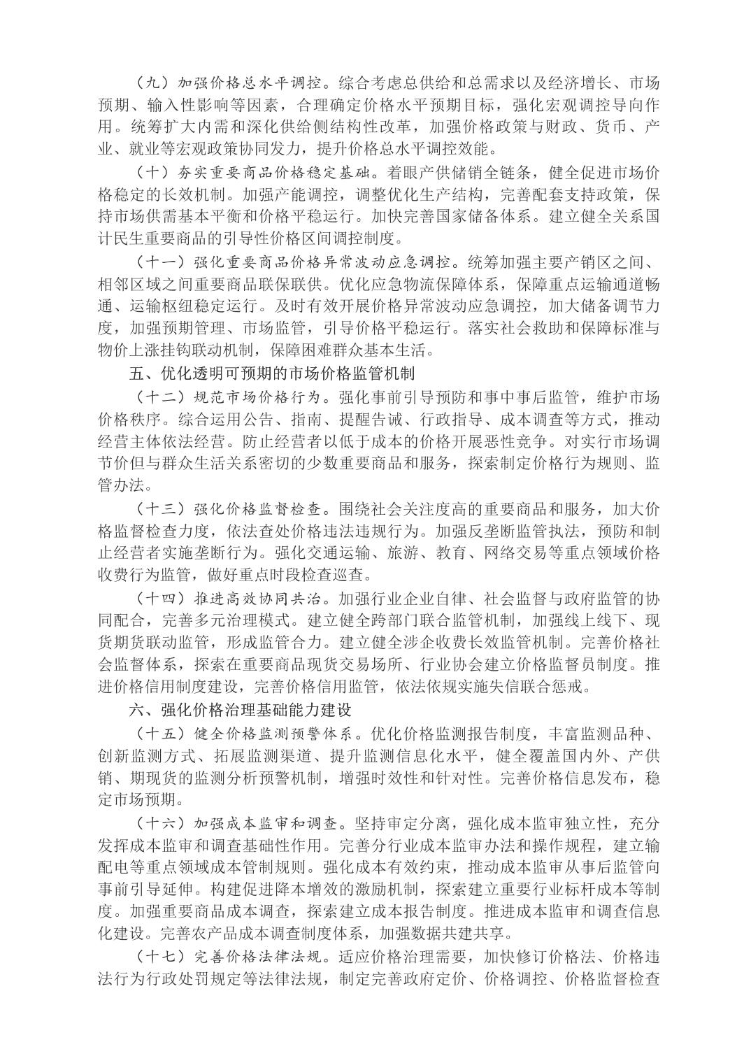 中共中央辦公廳 國務院辦公廳關于完善價格治理機制的意見