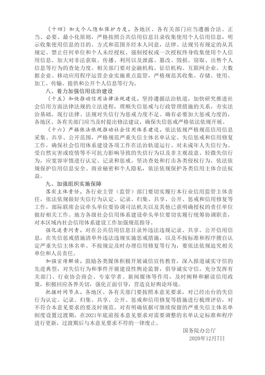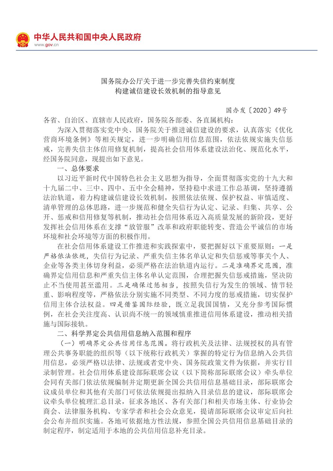 國務院辦公廳關于進一步完善失信約束制度構建誠信建設長效機制的指導意見