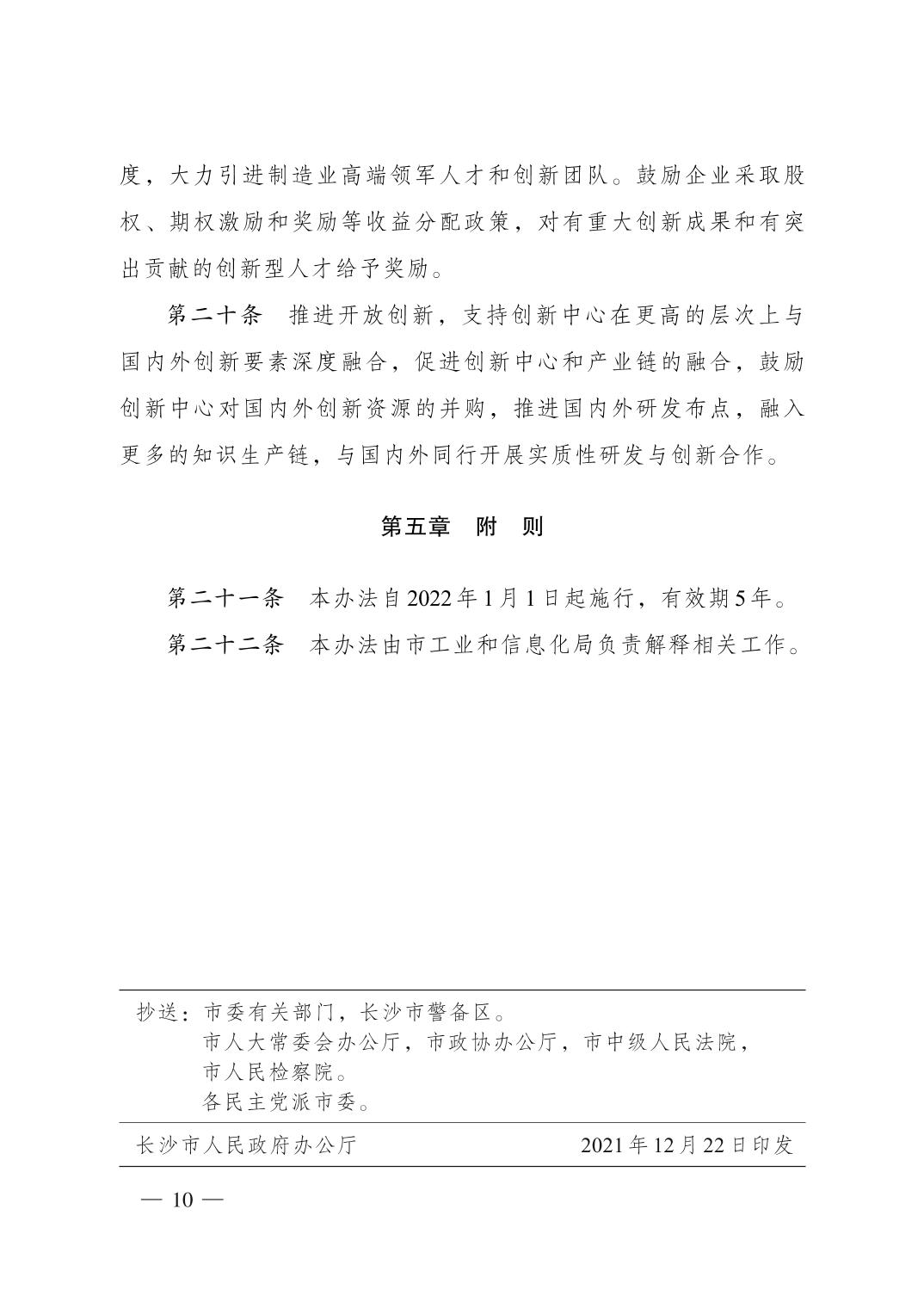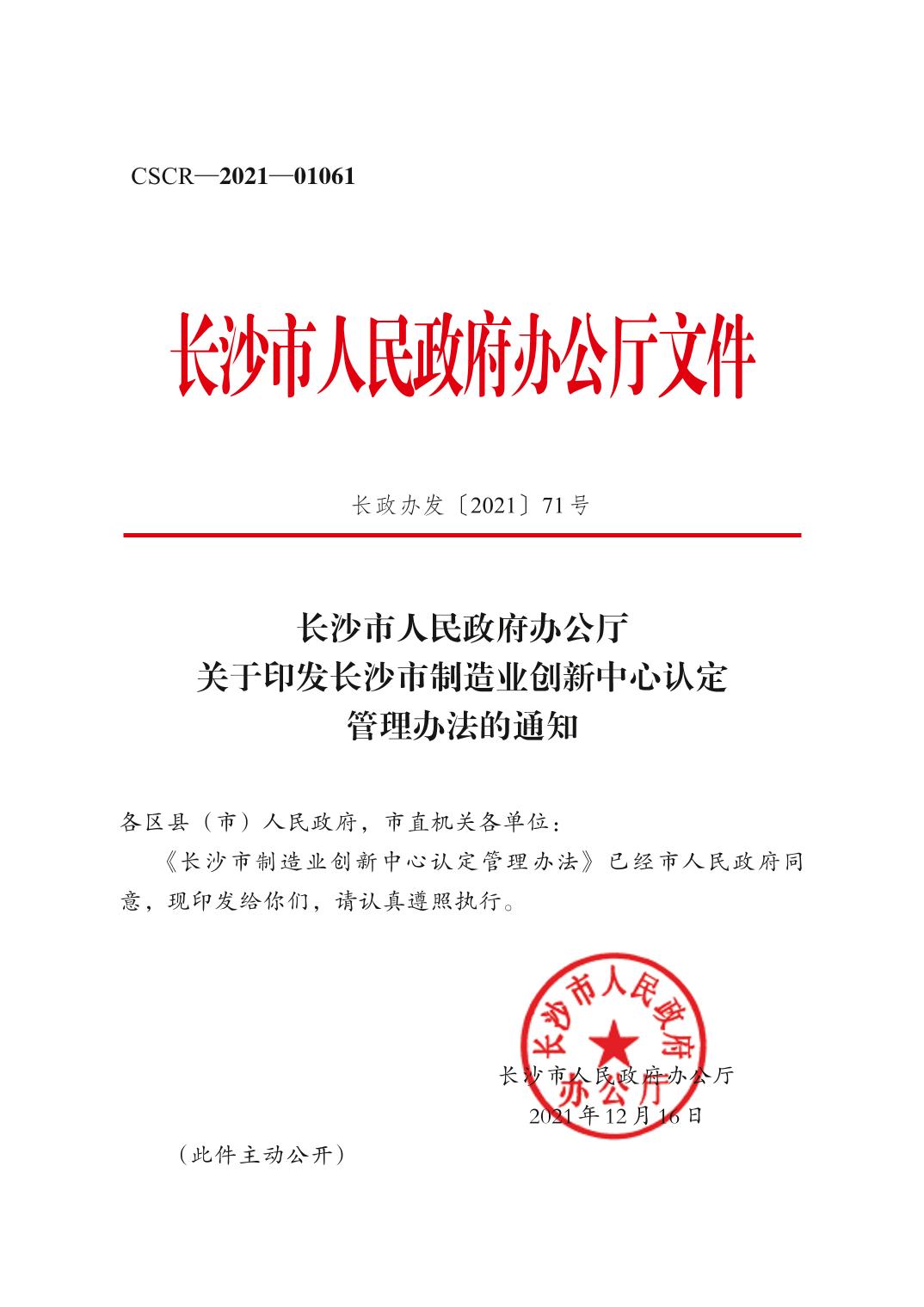 關于印發長沙市制造業創新中心認定管理辦法