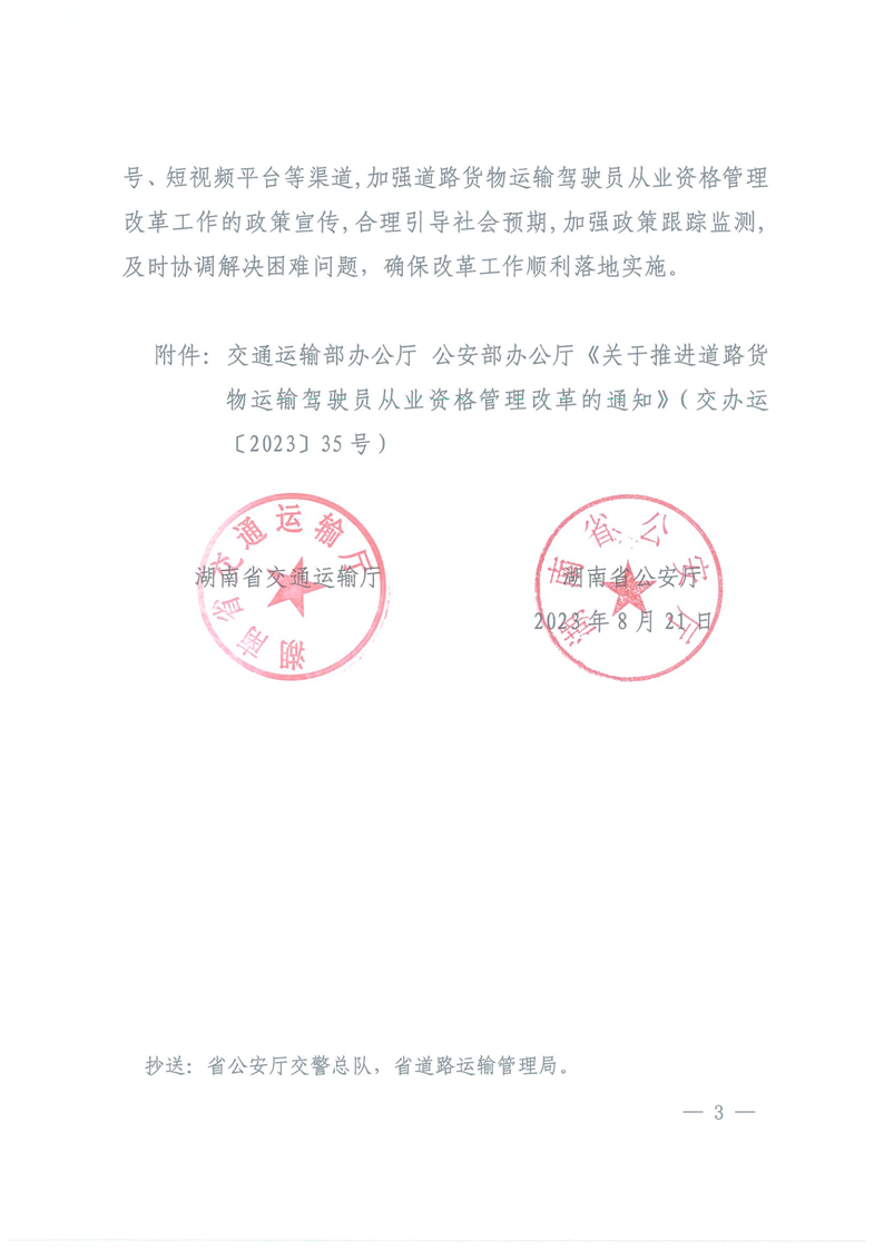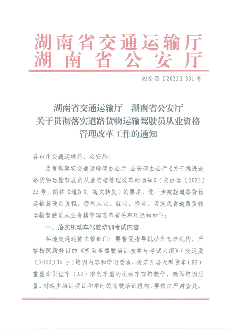 湖南省交通運輸廳 湖南省公安廳 關(guān)于貫徹落實道路貨物運輸駕駛員從業(yè)資格管理改革工作的通知