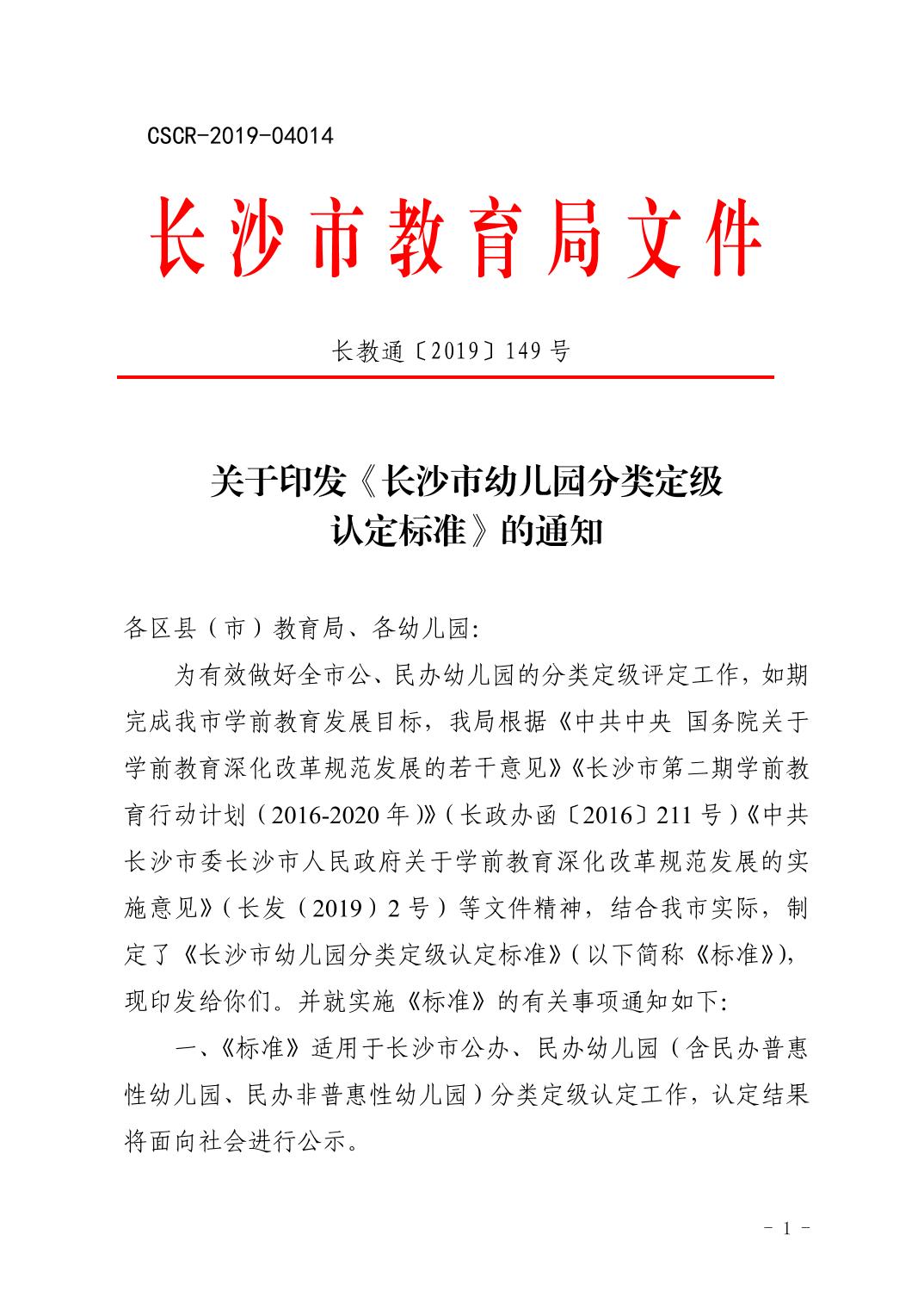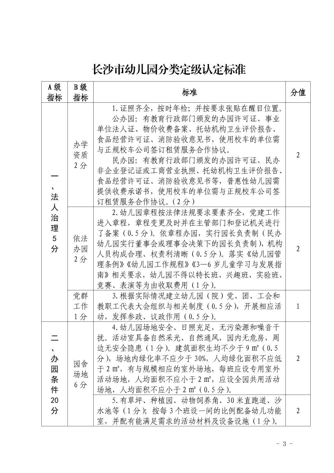 長沙市教育局關于印發《長沙市幼兒園分類定級認定標準》的通知