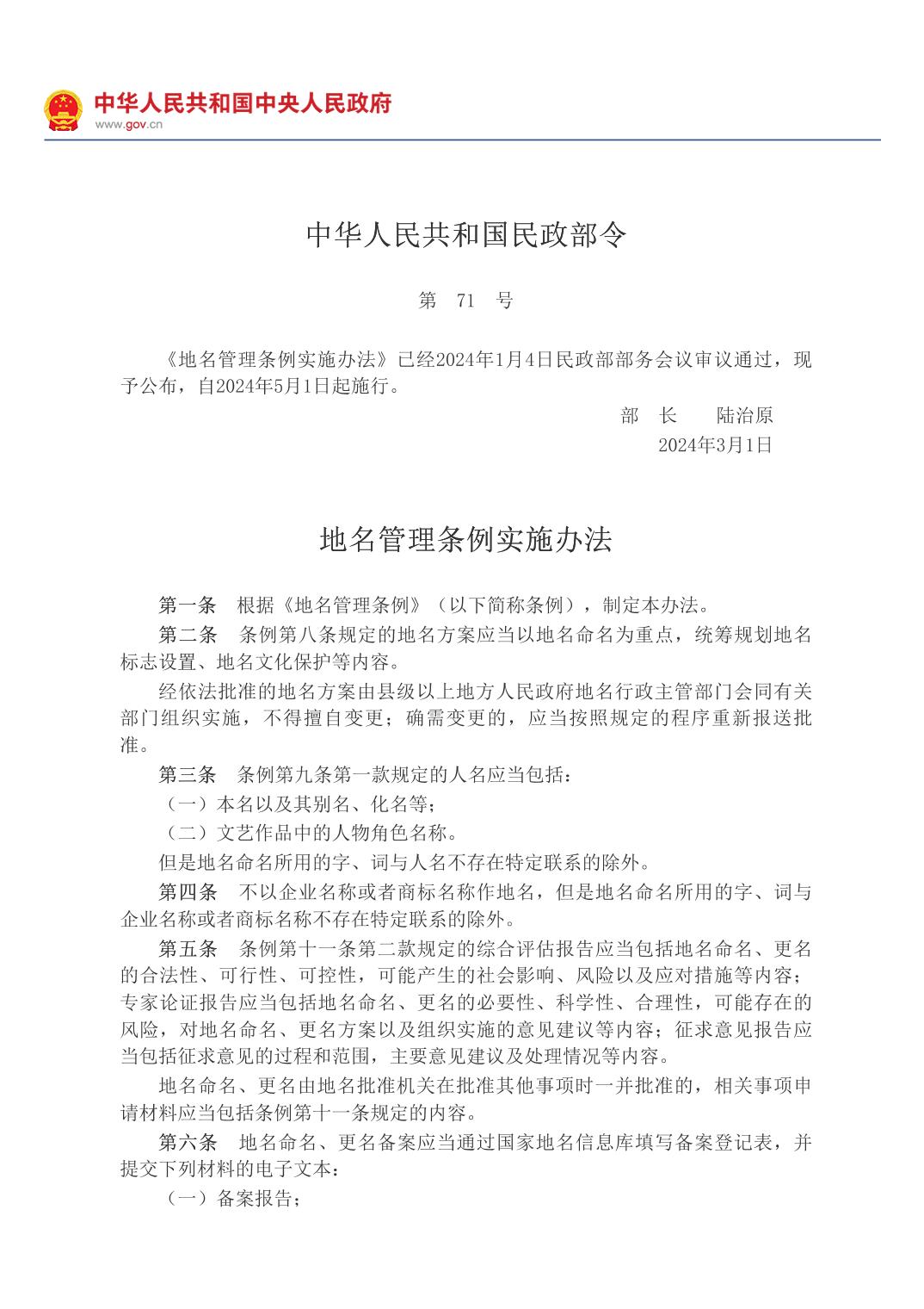 地名管理?xiàng)l例實(shí)施辦法