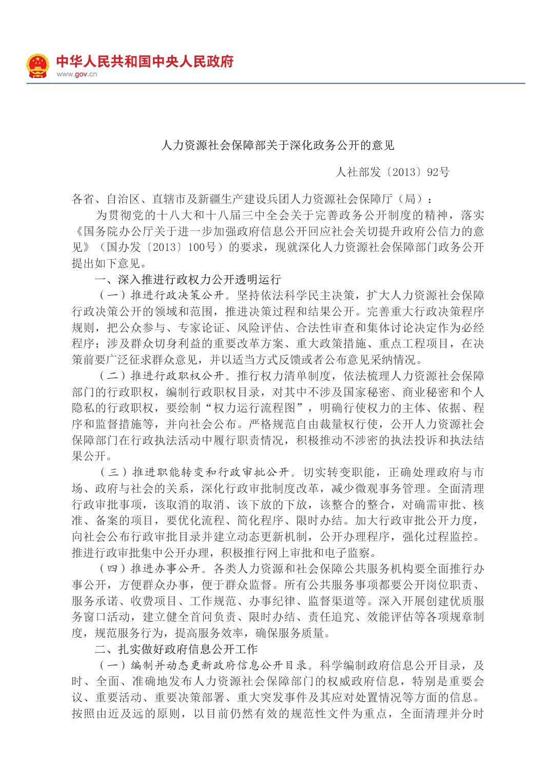 人力資源社會保障部關(guān)于深化政務(wù)公開的意見