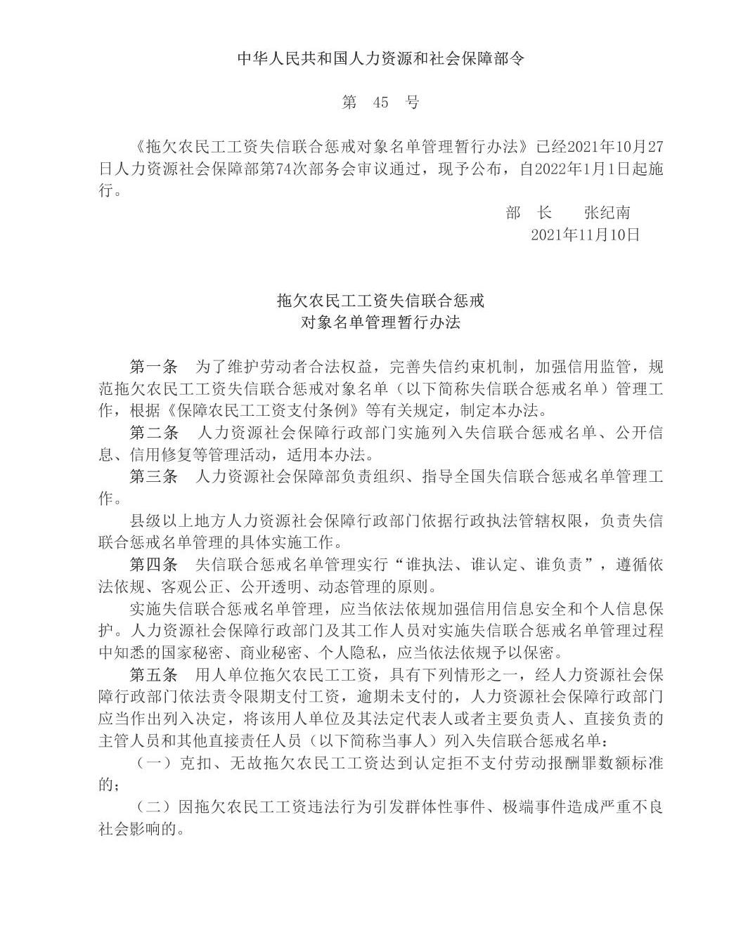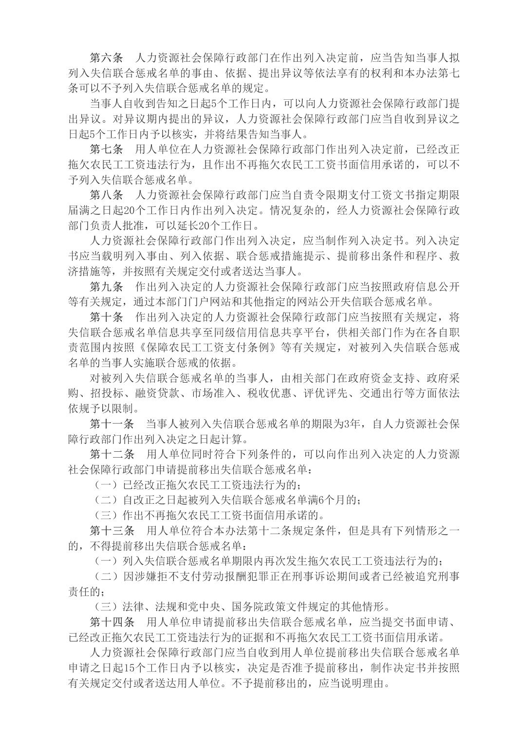 拖欠農(nóng)民工工資失信聯(lián)合懲戒對(duì)象名單管理暫行辦法