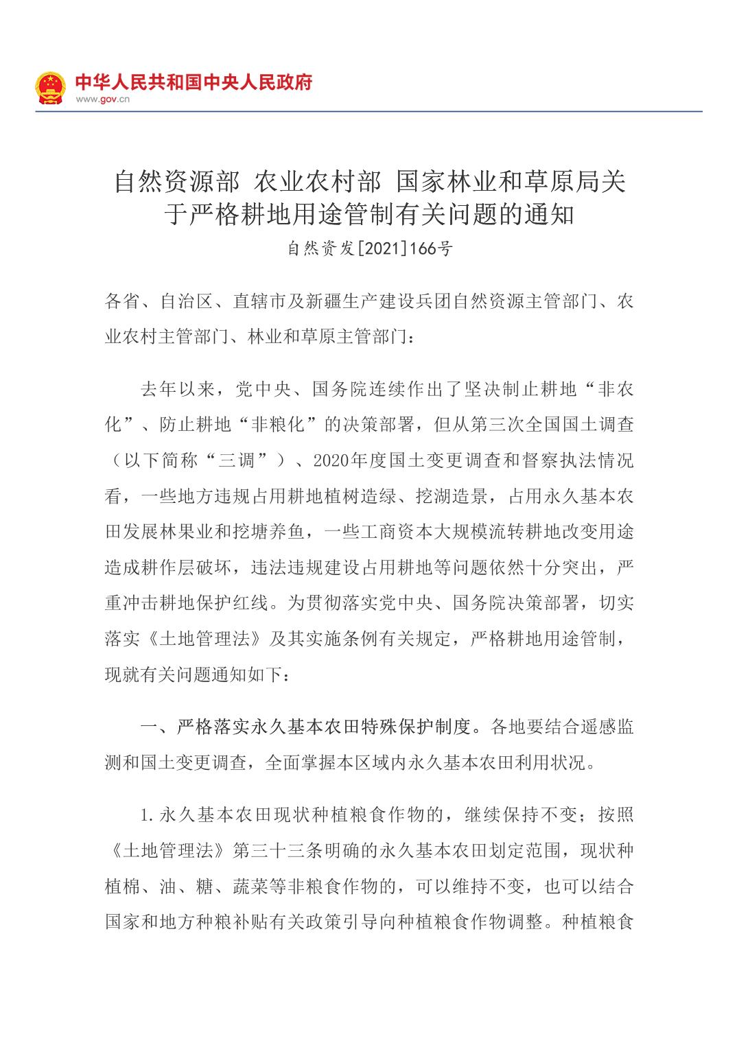 自然資源部 農業農村部 國家林業和草原局關于嚴格耕地用途管制有關問題的通知