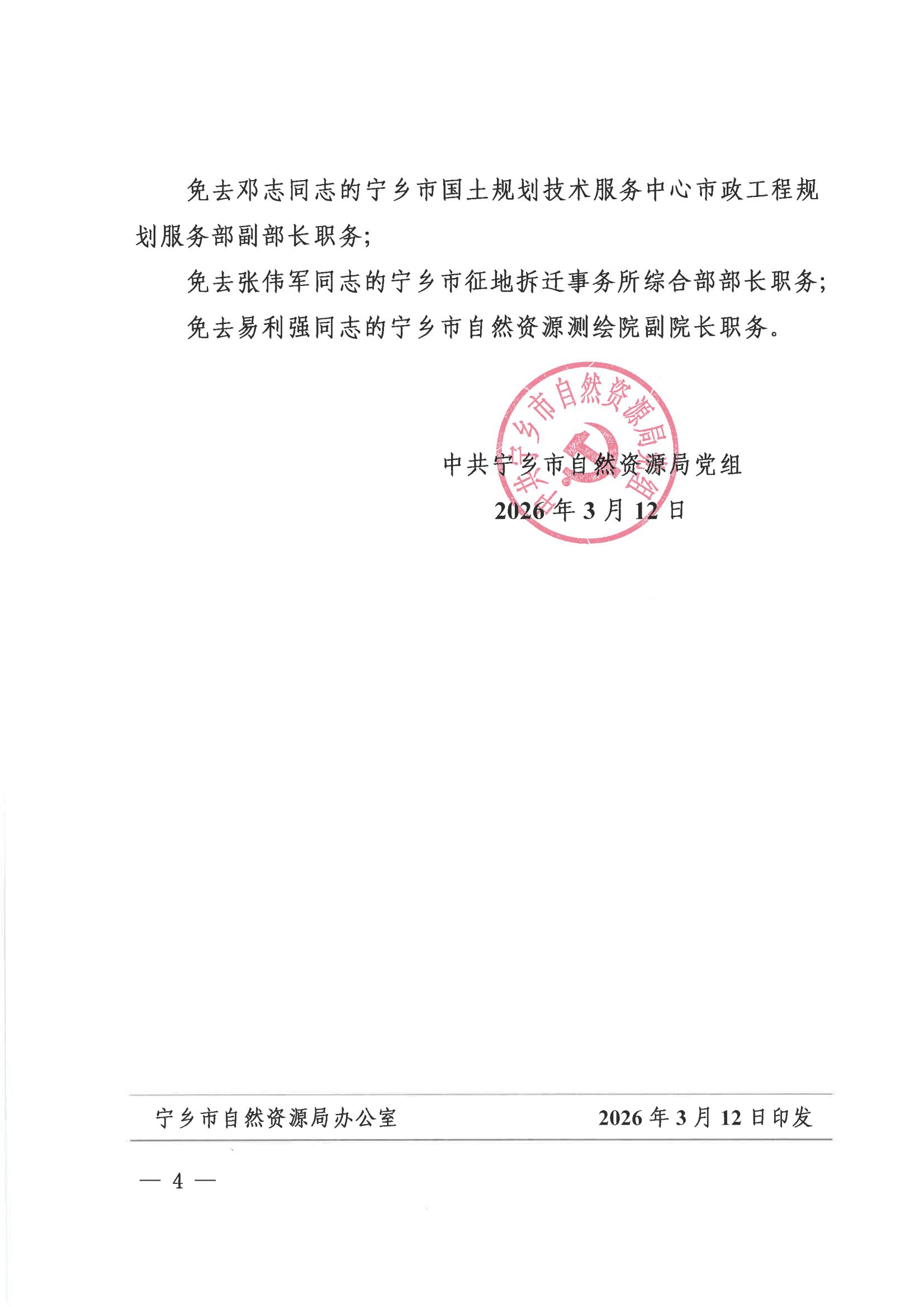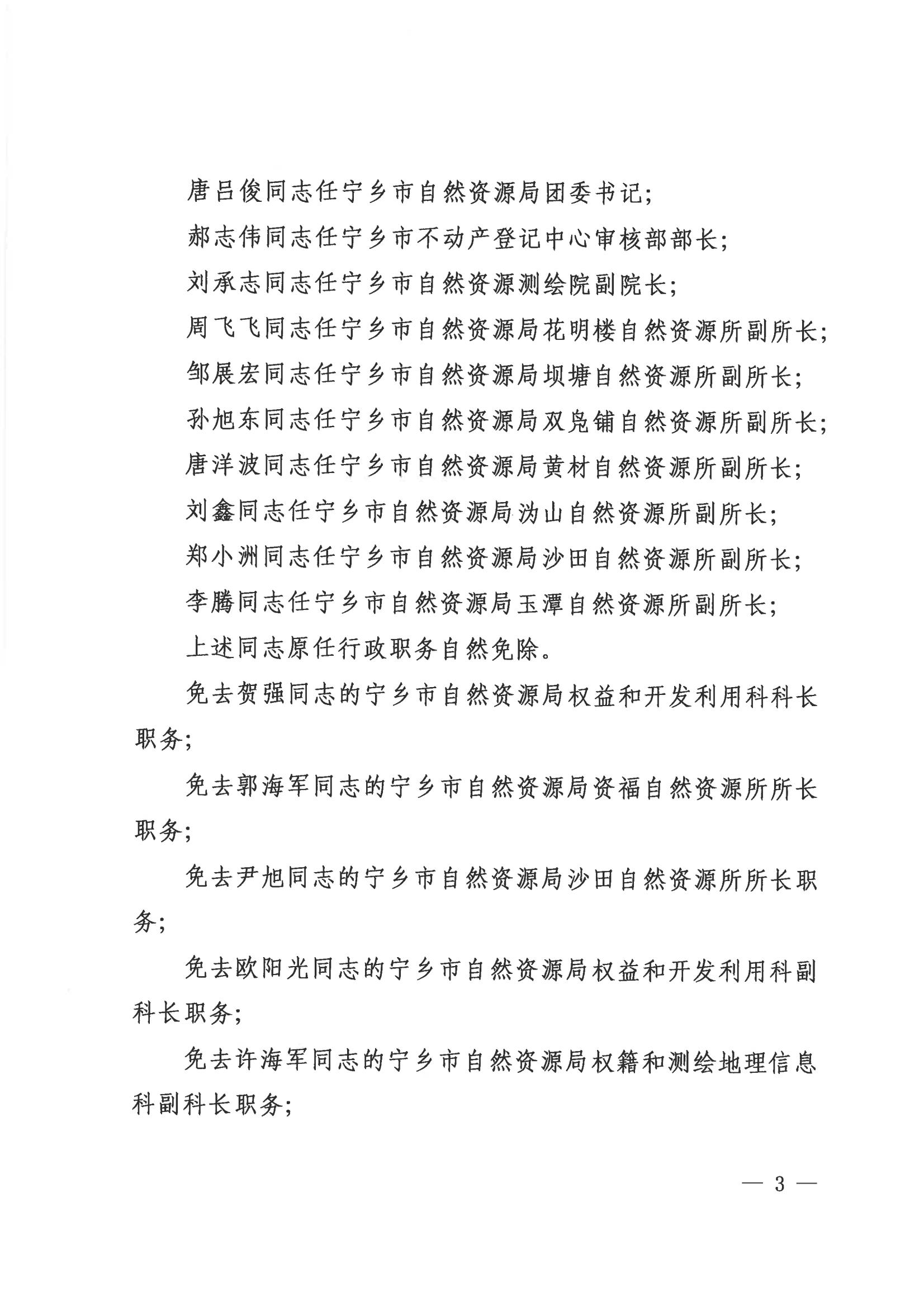 中共寧鄉市自然資源局黨組關于喻勇等同志職務任免的通知