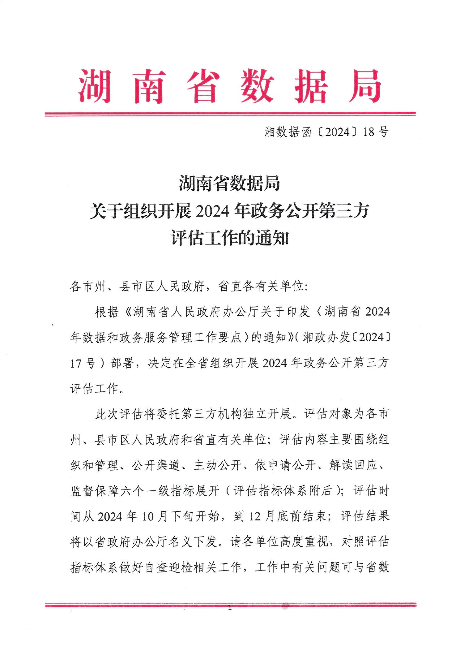 湖南省數據局關于組織開展2024年政務公開第三方評估工作的通知.pdf