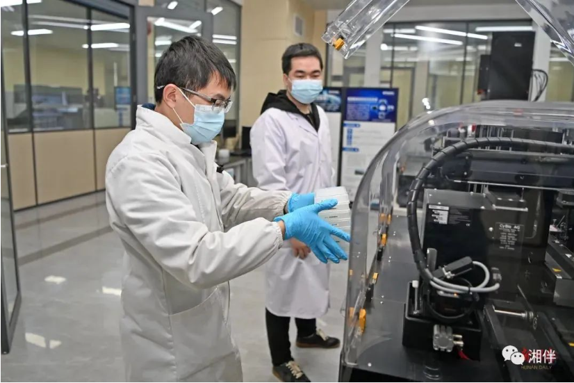 岳麓山種業創新中心實驗室,研究人員正在進行高通量儀器操作。湖南日報全媒體記者李健 攝