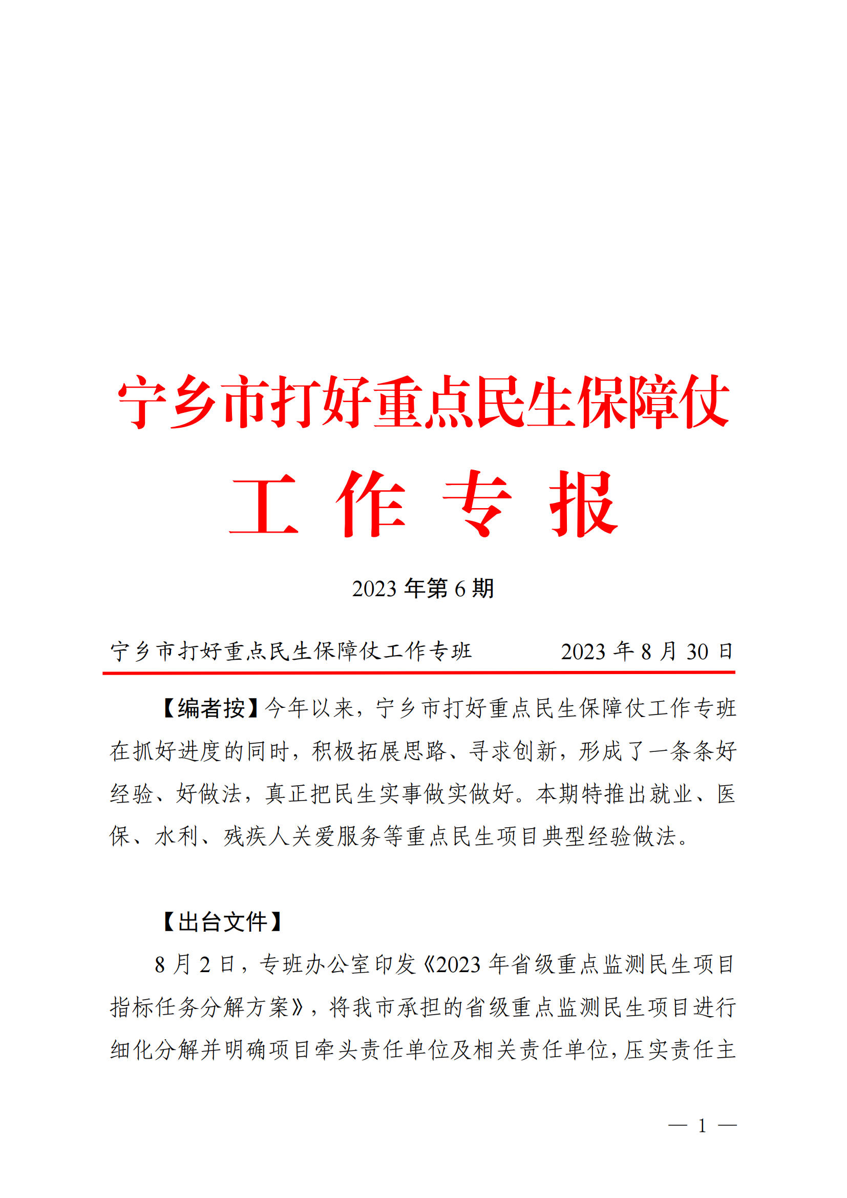 寧鄉(xiāng)市打好重點(diǎn)民生保障仗工作專報(bào)(第六期)