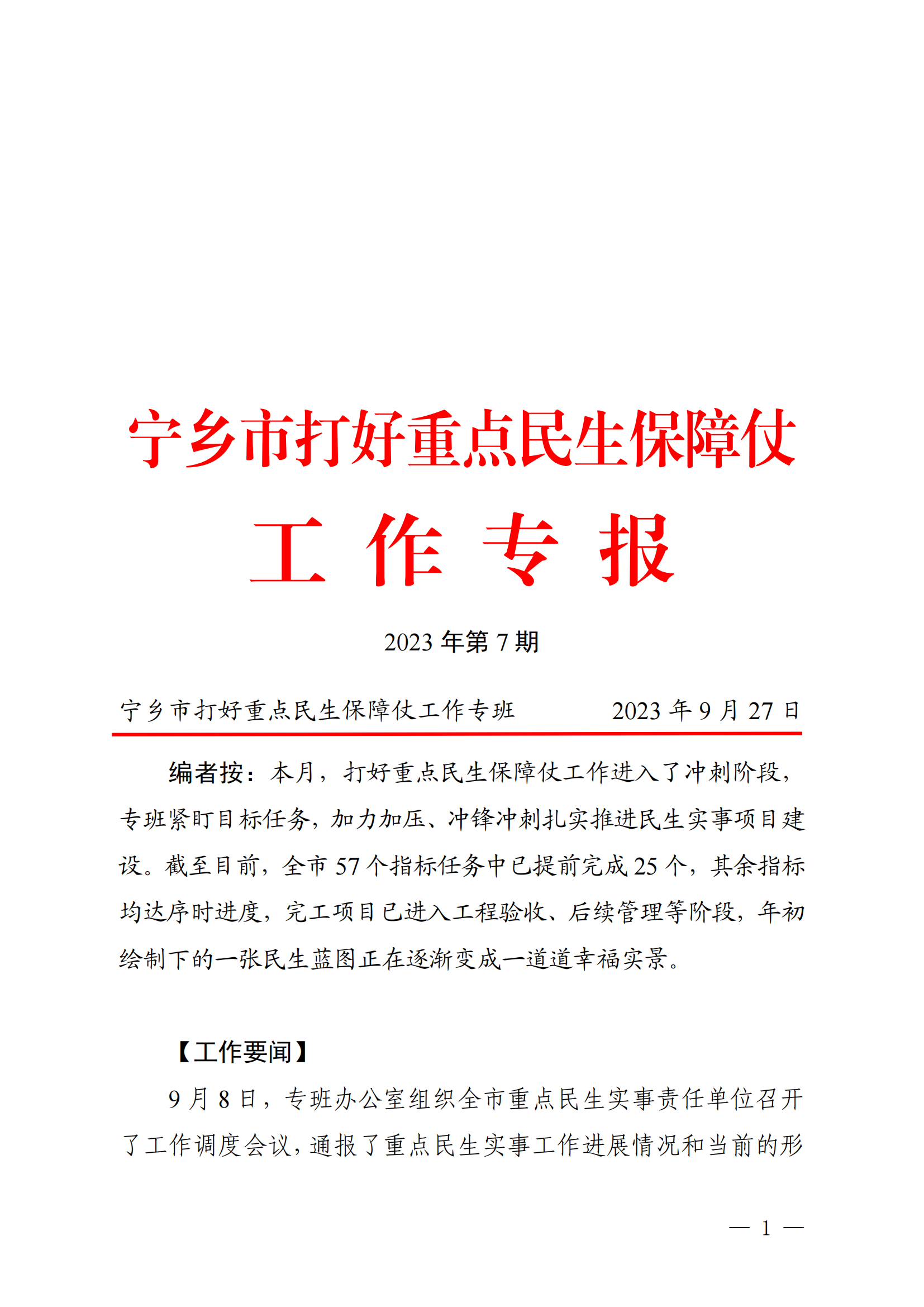 寧鄉市打好重點民生保障仗工作專報(第七期)