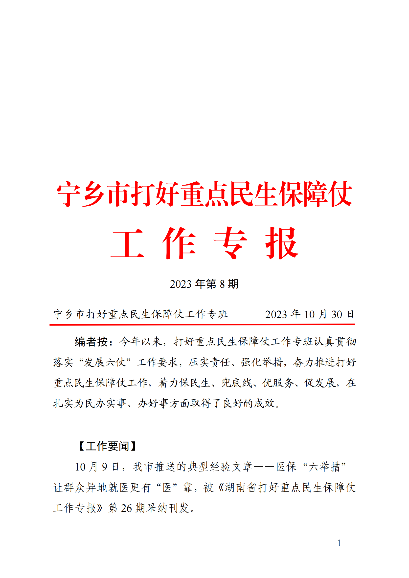 寧鄉市打好重點民生保障仗工作專報(第八期)