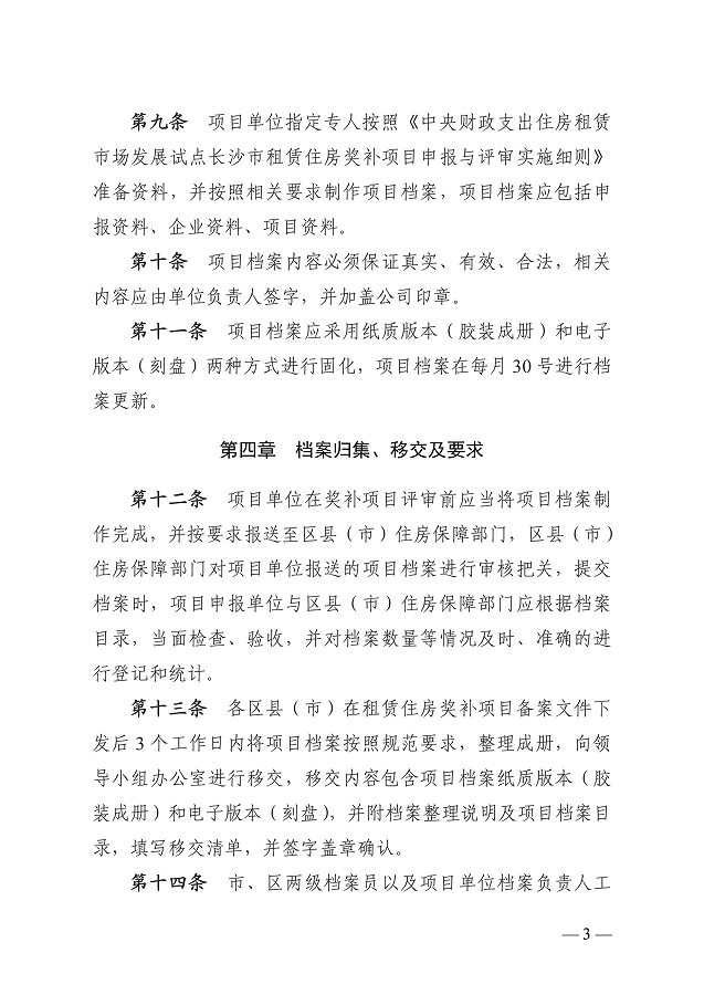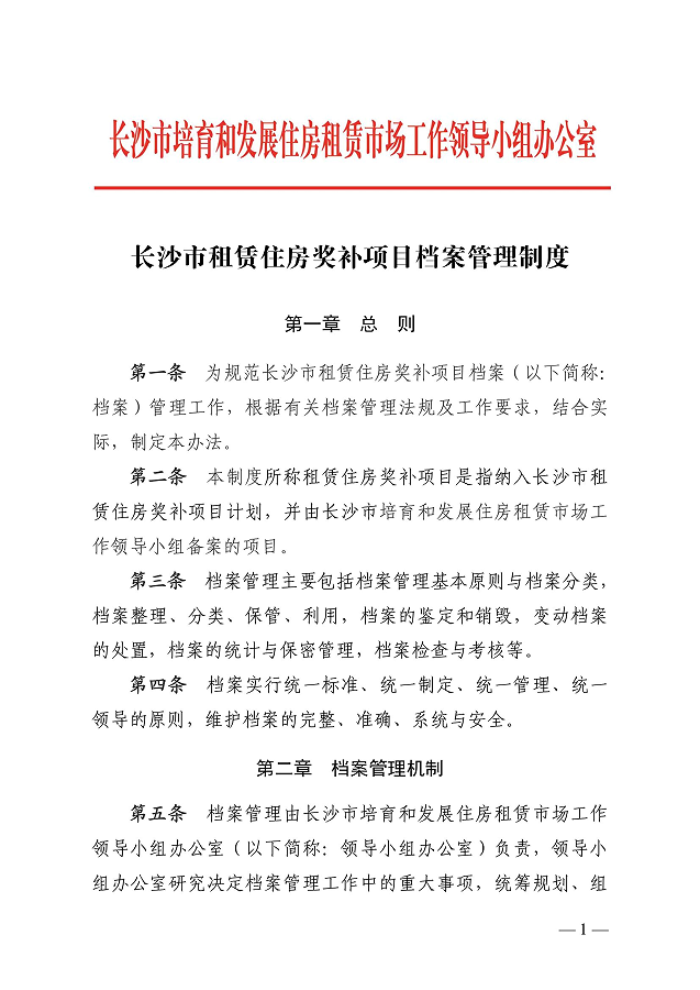 《長沙市租賃住房獎補項目檔案管理制度》
