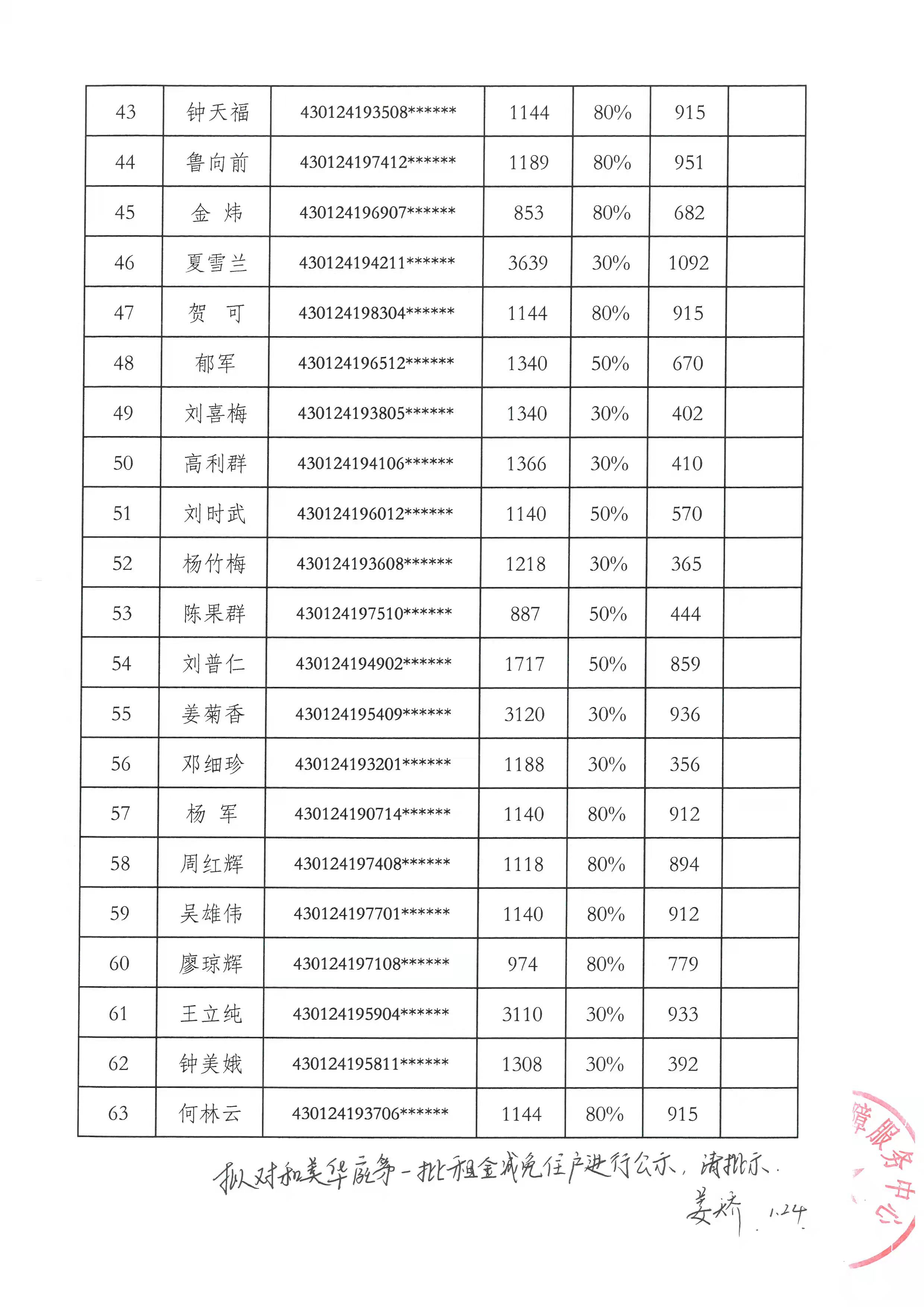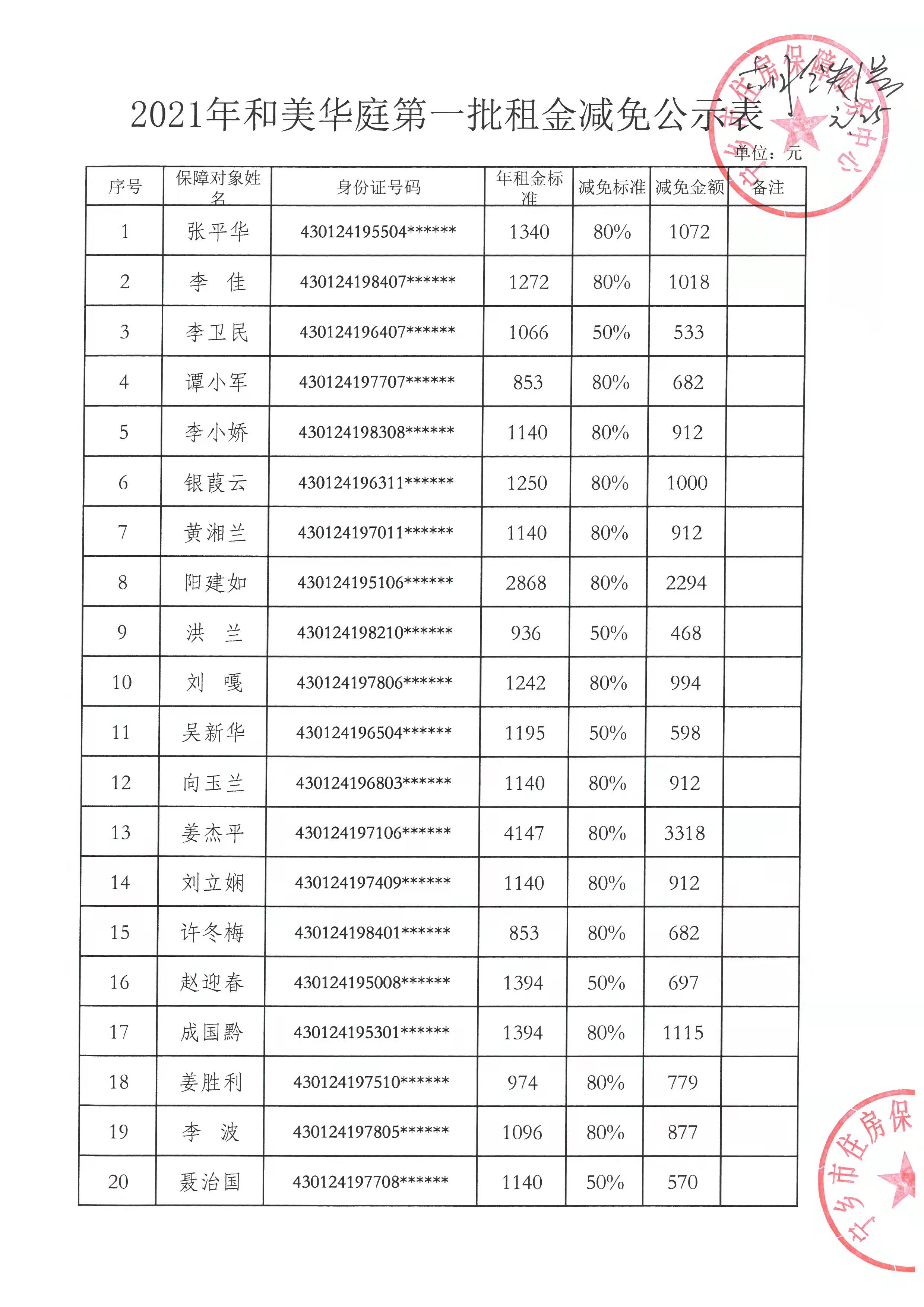 2021年和美華庭第一批租金減免公示表